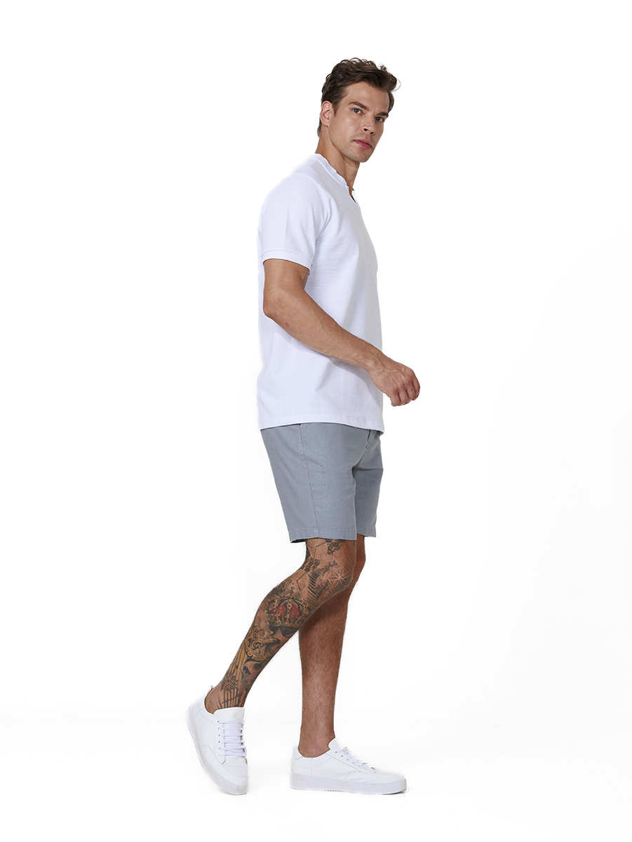 Essa bermuda chino é confeccionada em linho misto com viscose e elastano, resultando em um tecido leve, respirável e com excelente elasticidade. Seu caimento confortável aliado ao toque sofisticado proporcionam frescor e bem-estar em dias quentes.