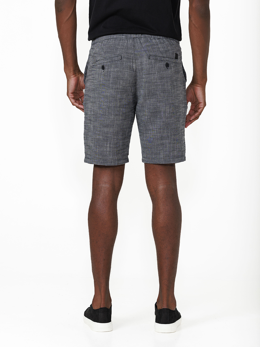 O cós com elástico proporciona liberdade de movimentos e ajuste natural ao corpo, enquanto o cadarço adiciona ainda mais praticidade, permitindo regulagem personalizada para um vestir perfeito.