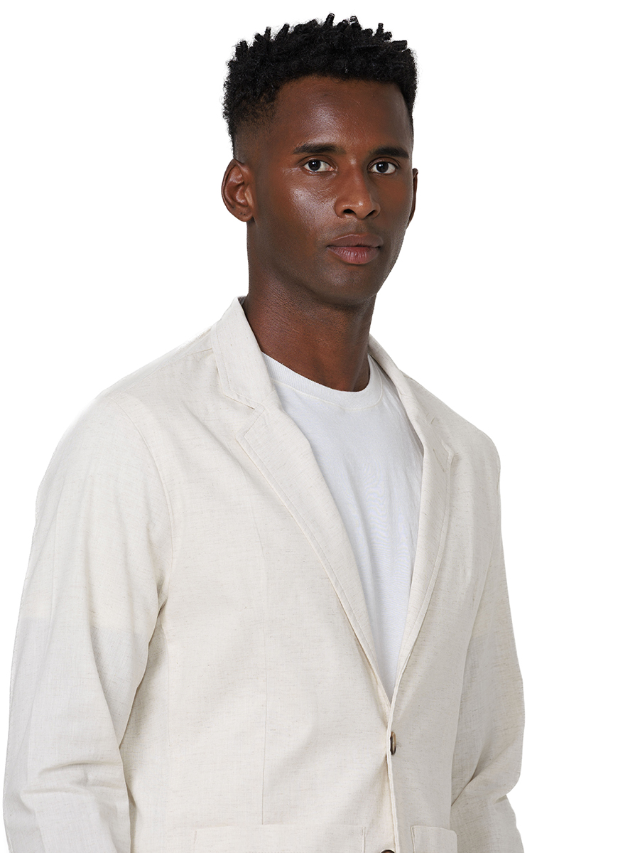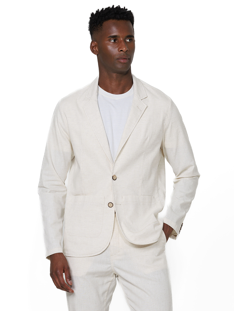 Blazer de Linho Blazer casual confeccionado em tecido leve com mistura de algodão, viscose, linho e elastano.