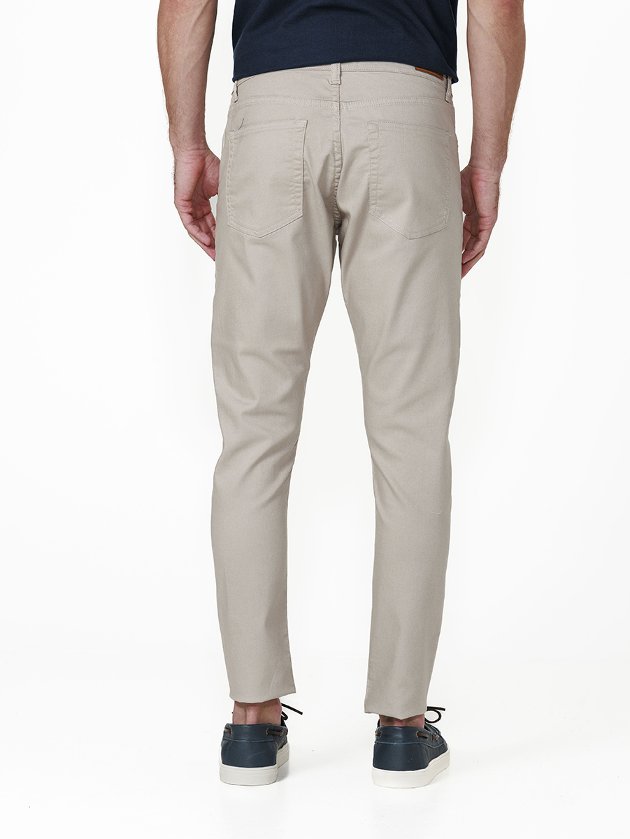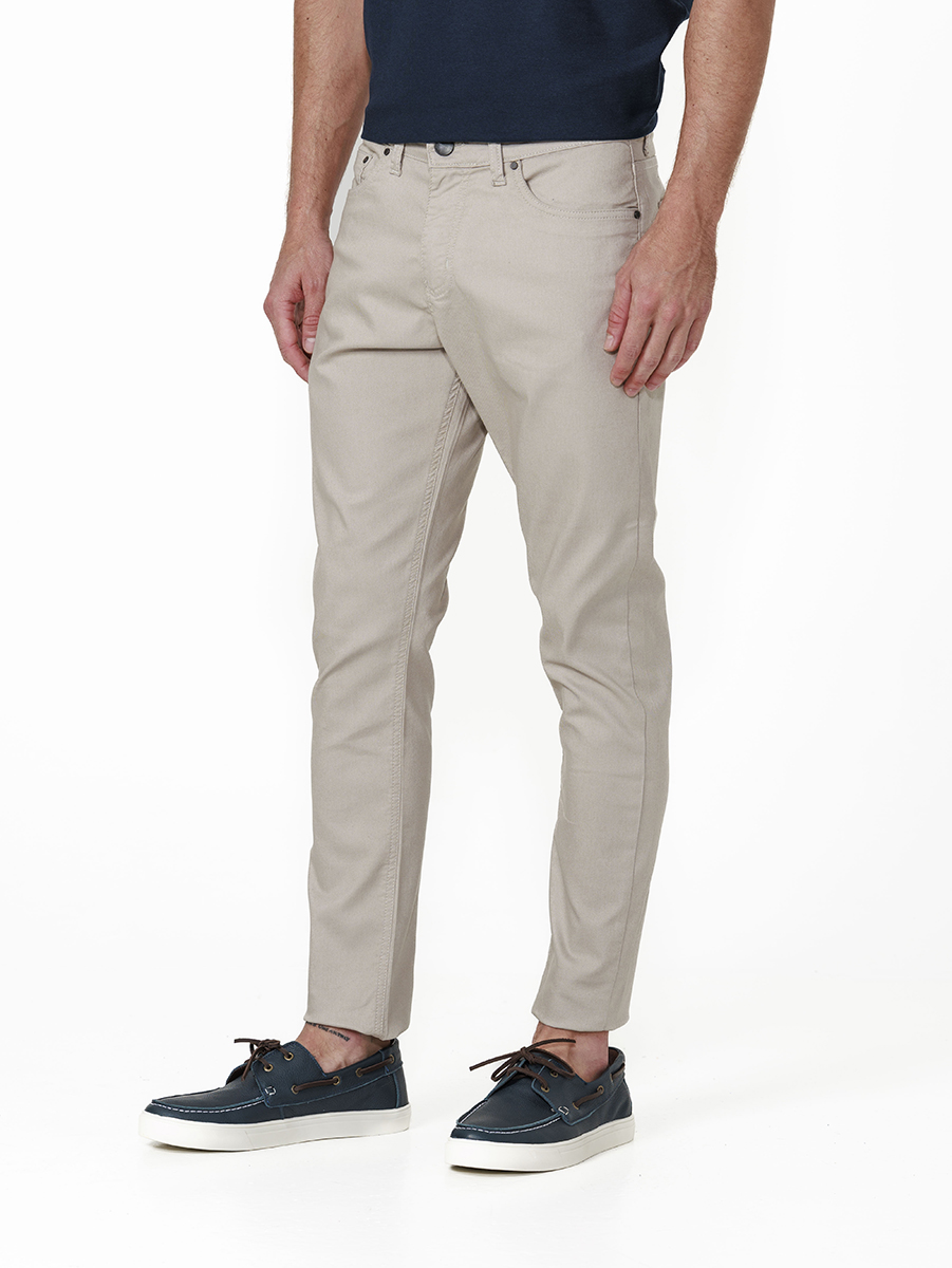 A Calça Five Pockets é confeccionada em tecido plano leve com construção cetim, que garante um toque macio, sutilmente acetinado e de visual sofisticado.