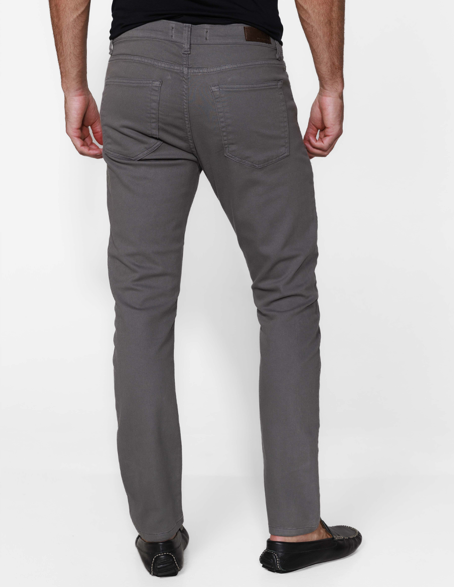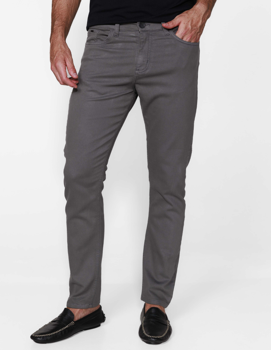 Calça de sarja com toque de moletom, é a escolha certa para quem quer estar sempre arrumado com máximo conforto. Com dois bolsos frontais e bolso de moeda e dois bolsos trazeiros, botão Ls em metal preto e etiqueta traseira em couro.