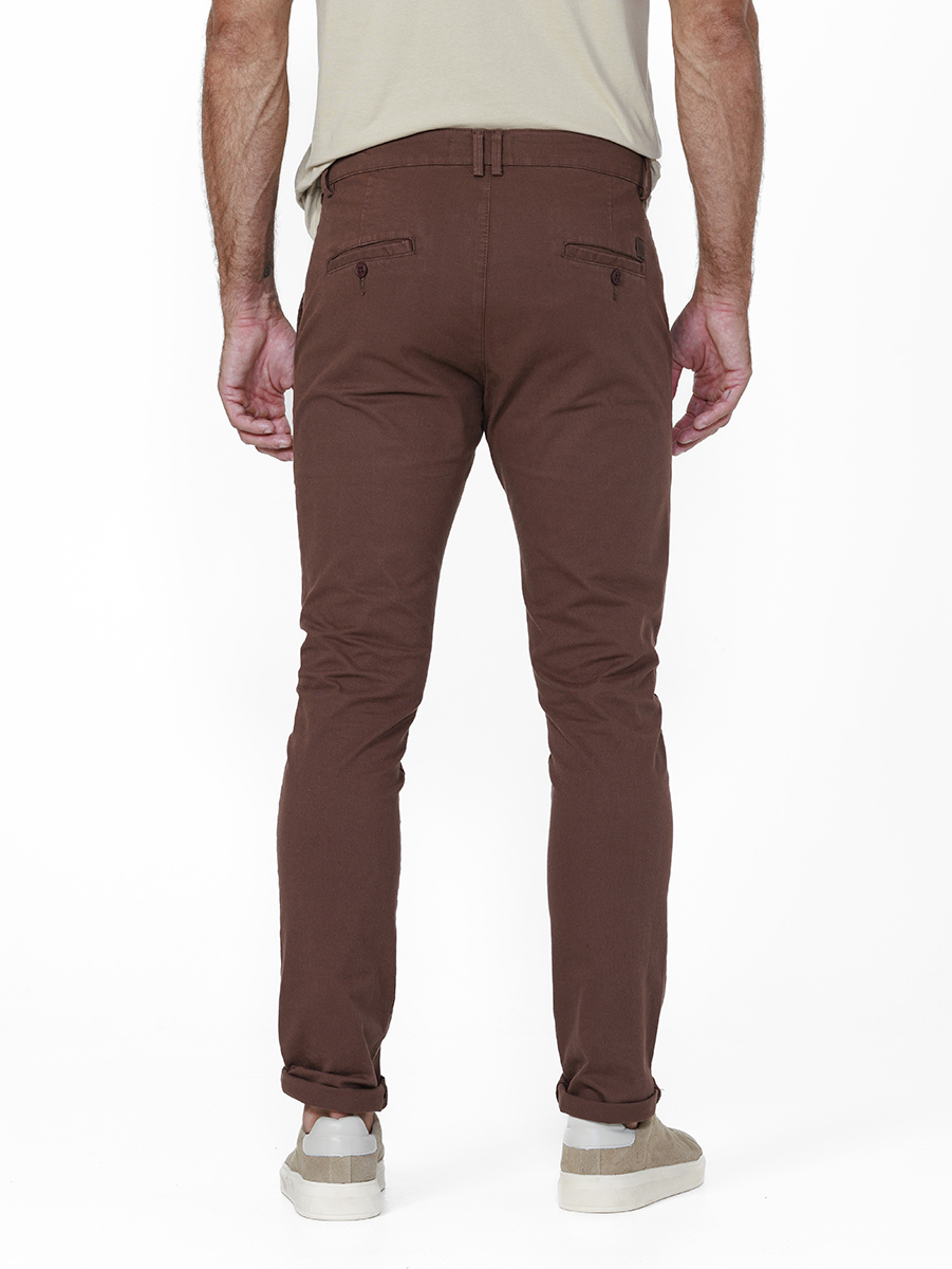 Calça confeccionada em sarja leve de algodão com elastano, que proporciona toque macio, flexibilidade e conforto ao longo do dia.