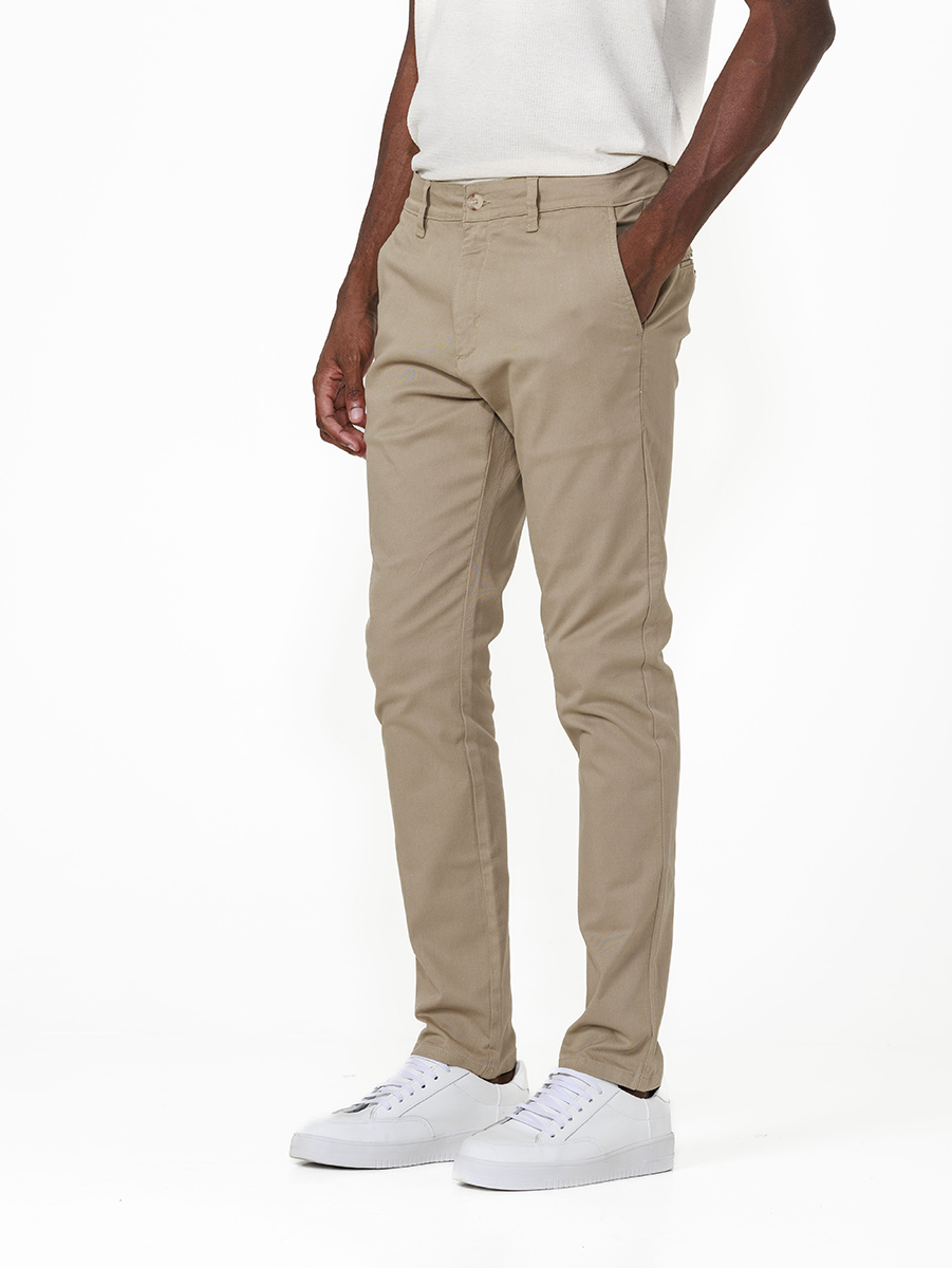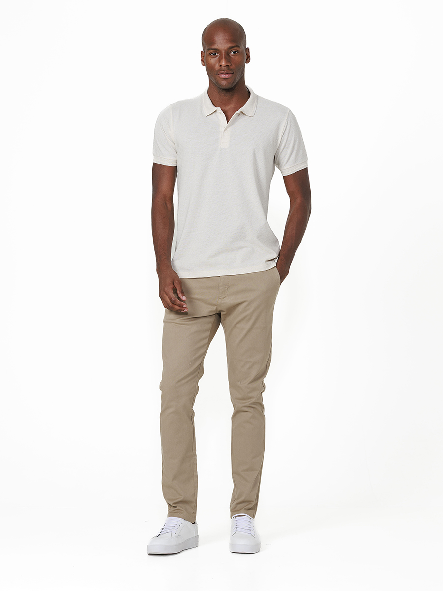 Calça confeccionada em sarja de algodão com elastano, que proporciona toque macio, flexibilidade e conforto ao longo do dia.