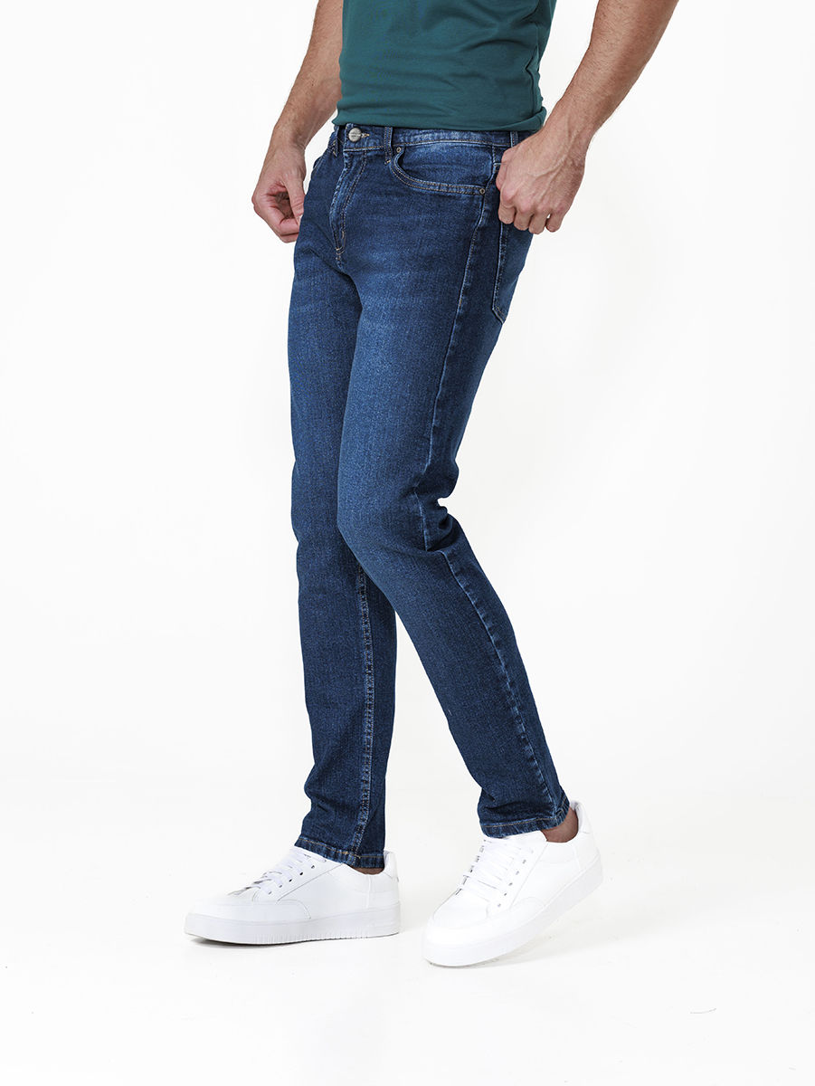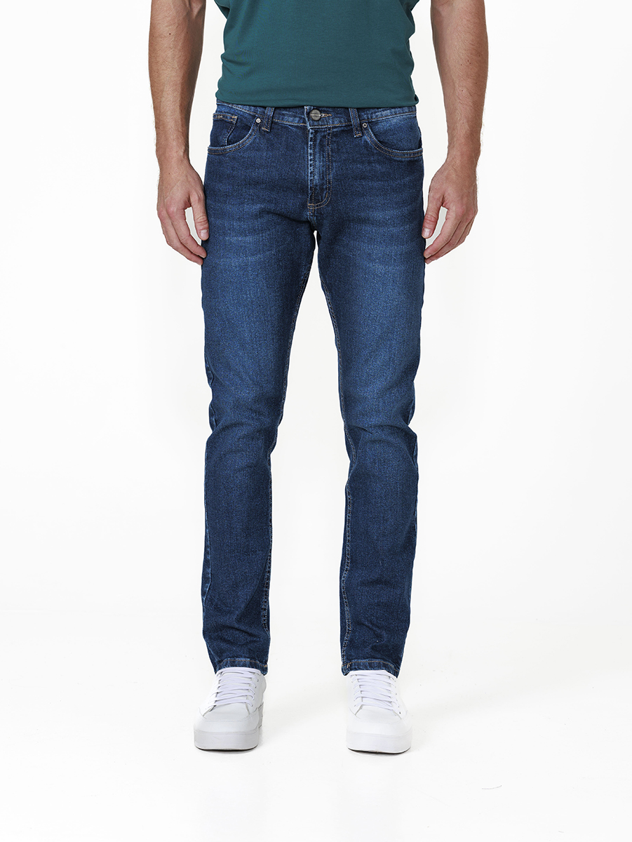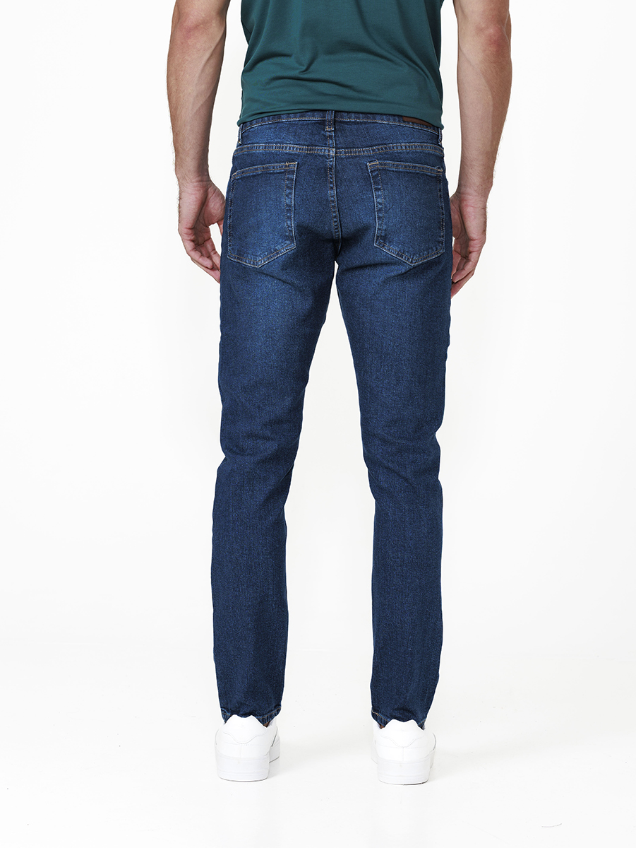 Calça Jeans apresenta lavagem com tom azul índigo intenso, que simula o desgaste natural da peça, com marcações suaves que adicionam autenticidade ao visual.
