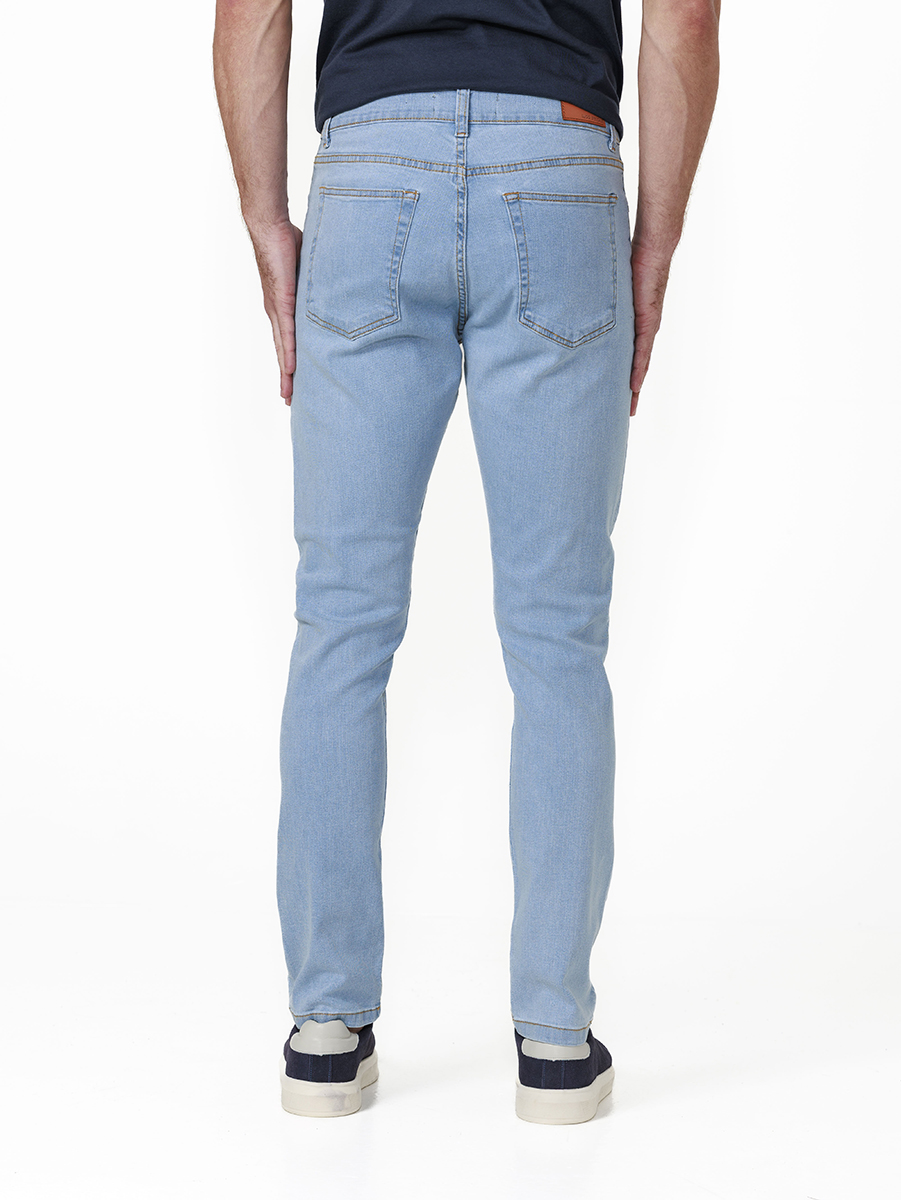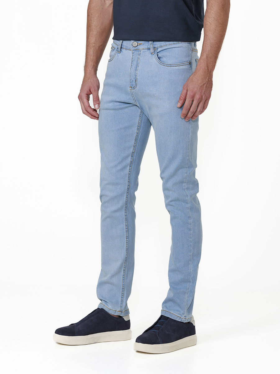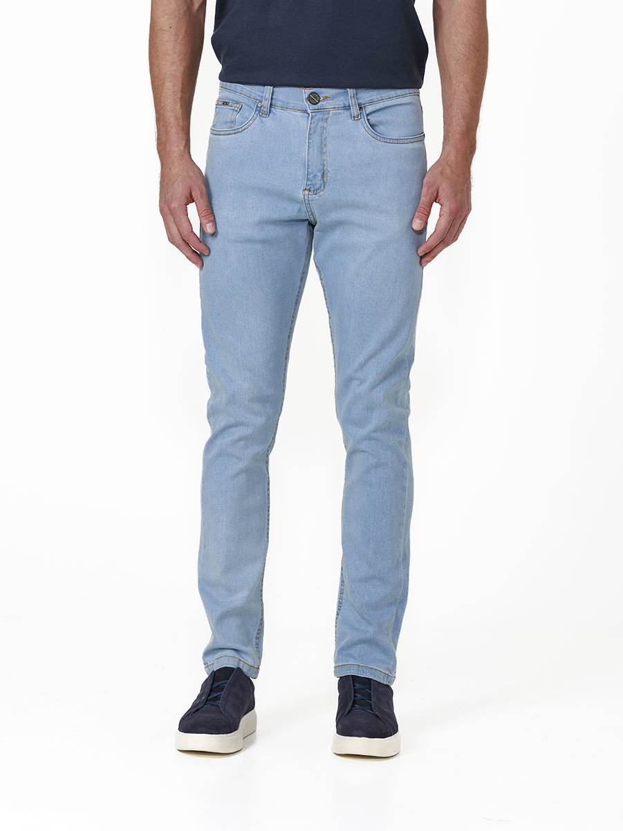Esta calça jeans é confeccionada em denim ringado de alta qualidade, com lavagem clara que proporciona um visual naturalmente desgastado e cheio de autenticidade.