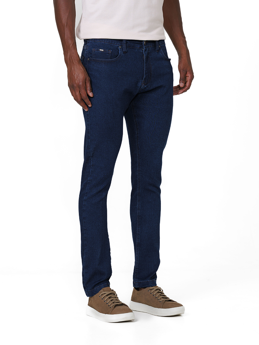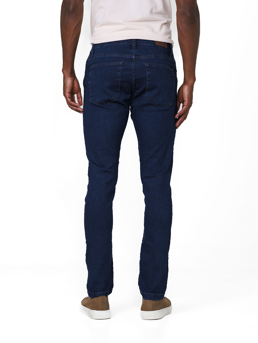 A calça jeans índigo apresenta uma lavagem amaciada que realça sua tonalidade clássica e garante conforto desde o primeiro uso.