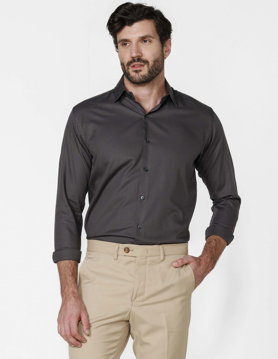 Camisa manga longa, em tecido de textura minimalista, elegante e sofisticado
