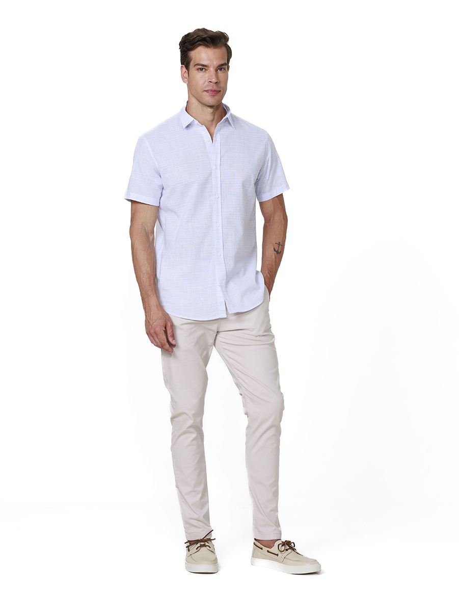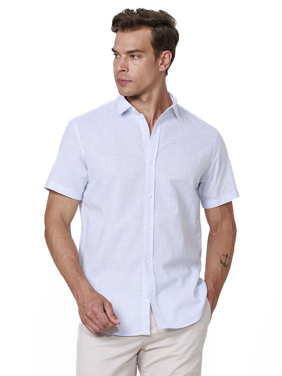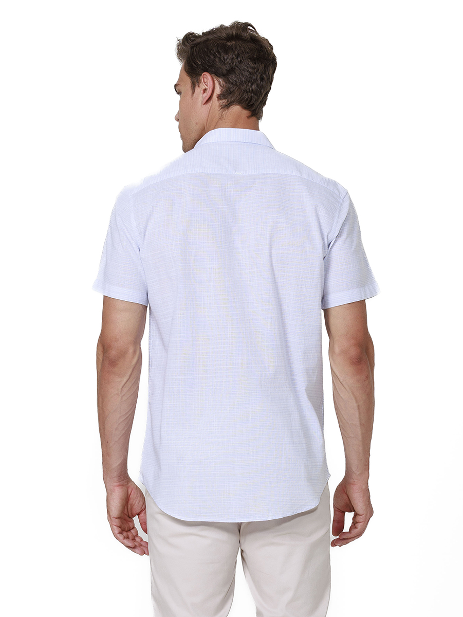 Os botões reforçam o estilo casual sofisticado, e a plaquinha aplicada traz um detalhe de acabamento que valoriza ainda mais a peça. Uma camisa que equilibra estilo, conforto e leveza com perfeição.
