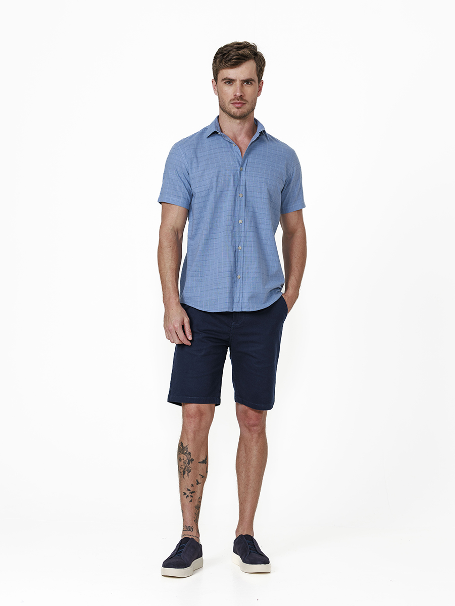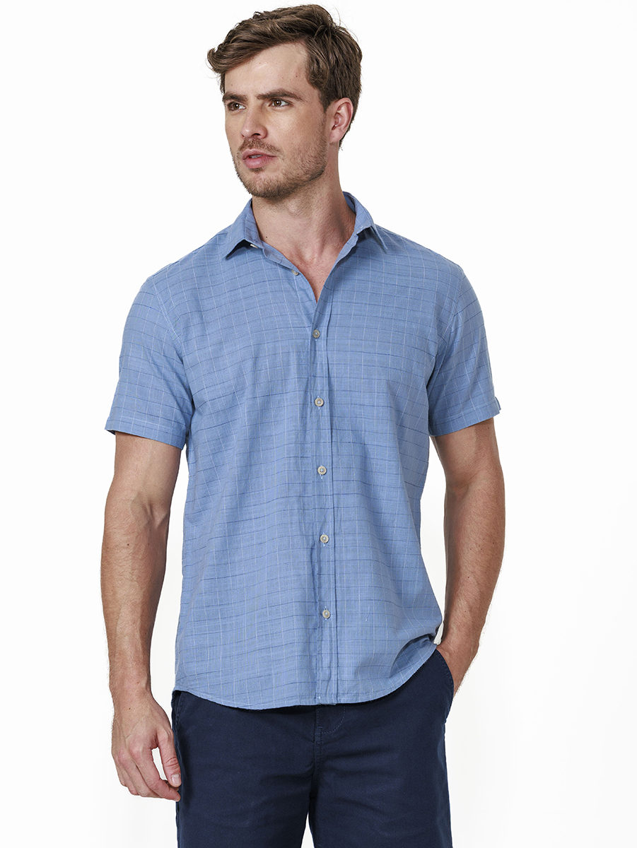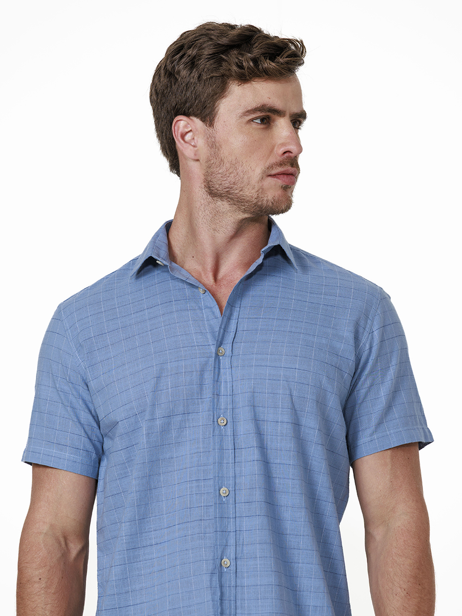 Essa camisa de manga curta é confeccionada em tecido slub flamê fio tinto, que combina visual casual com um toque de sofisticação.