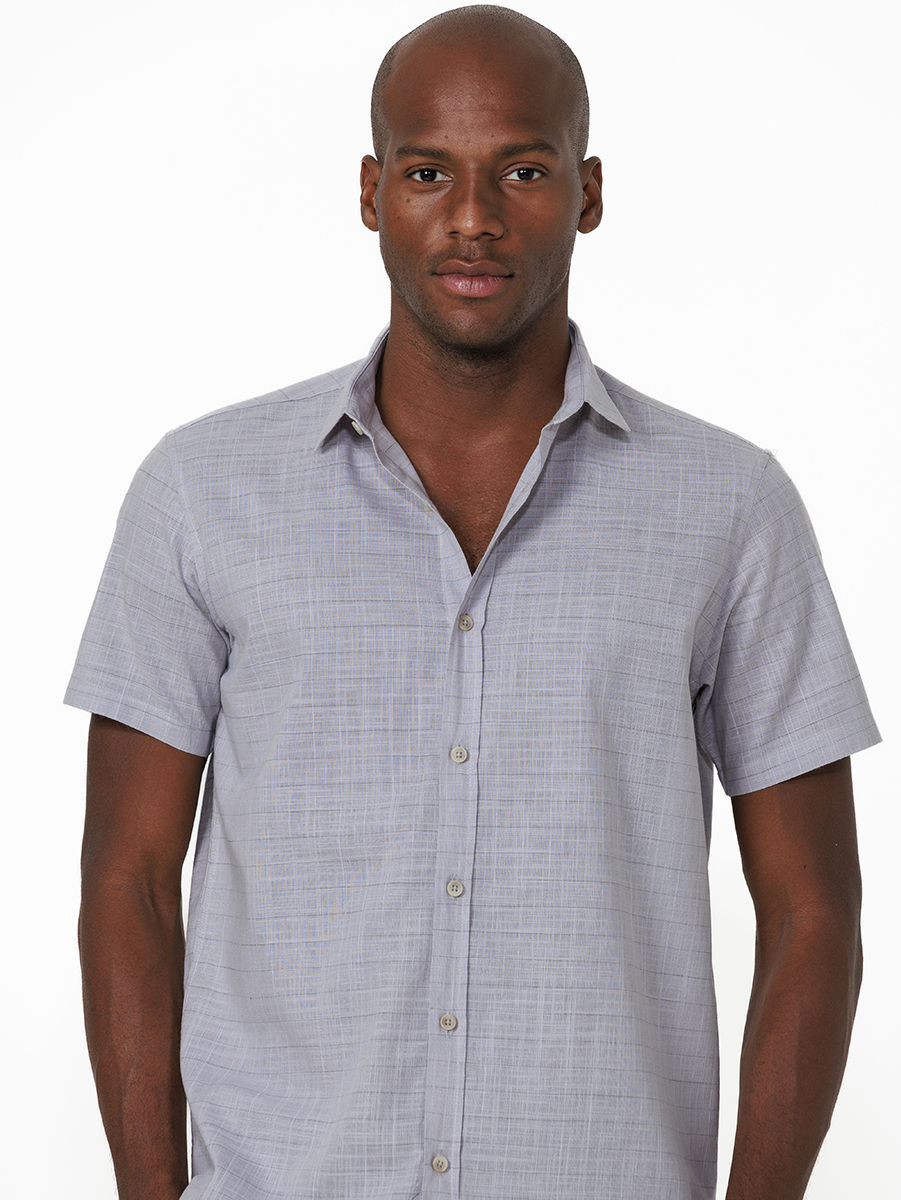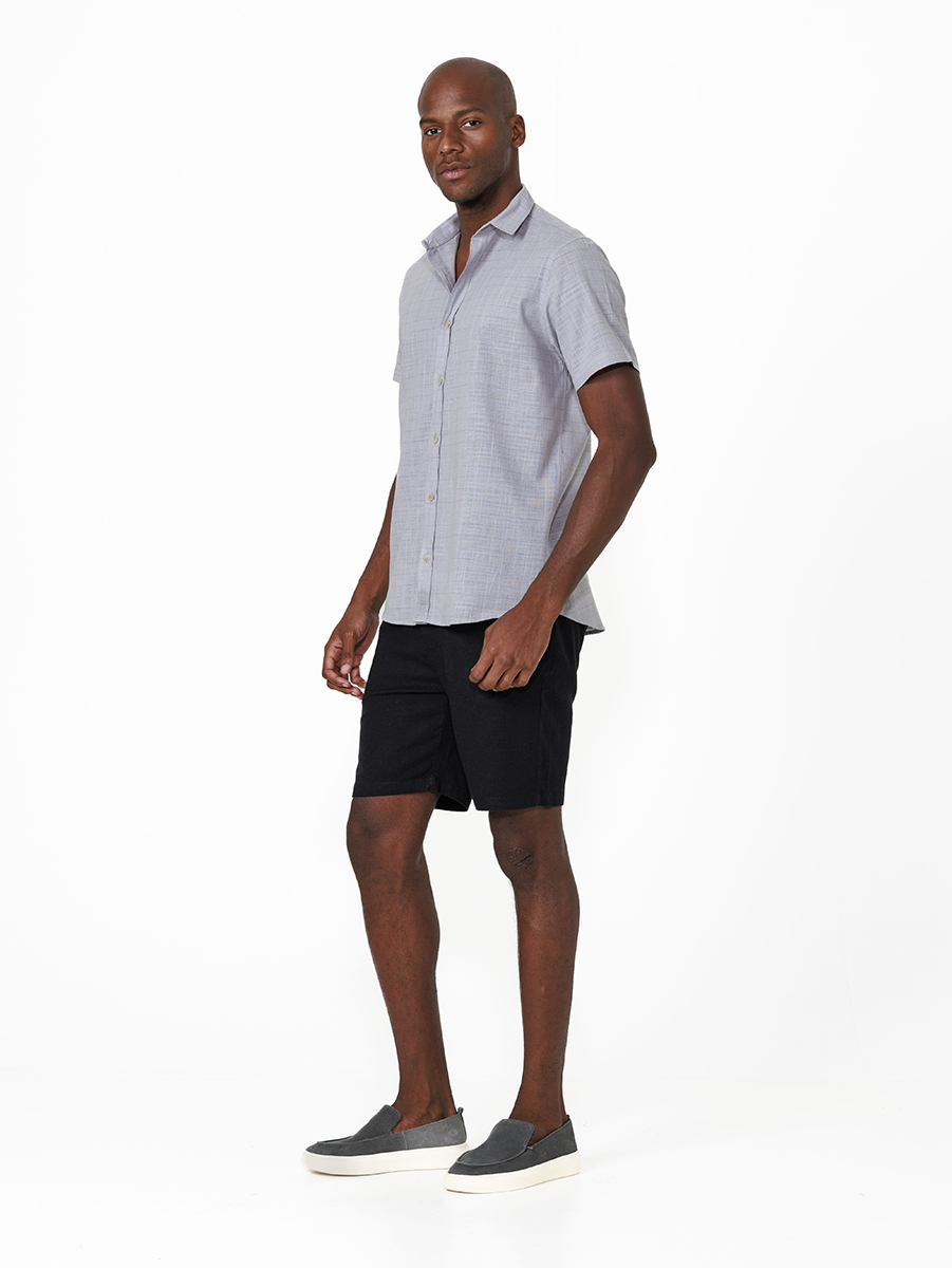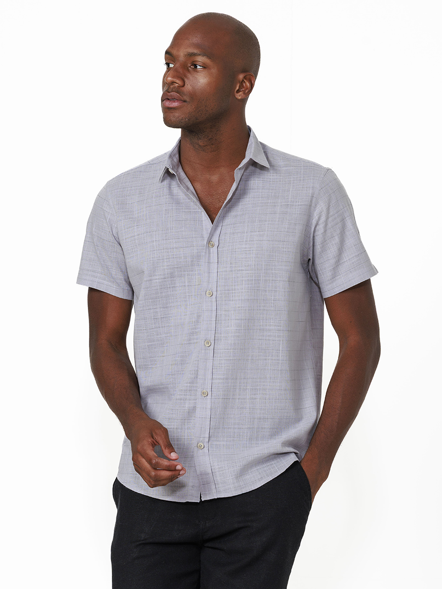 Essa camisa de manga curta é confeccionada em tecido slub flamê fio tinto, que combina visual casual com um toque de sofisticação.