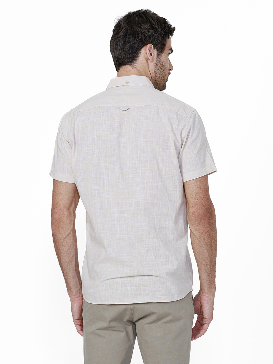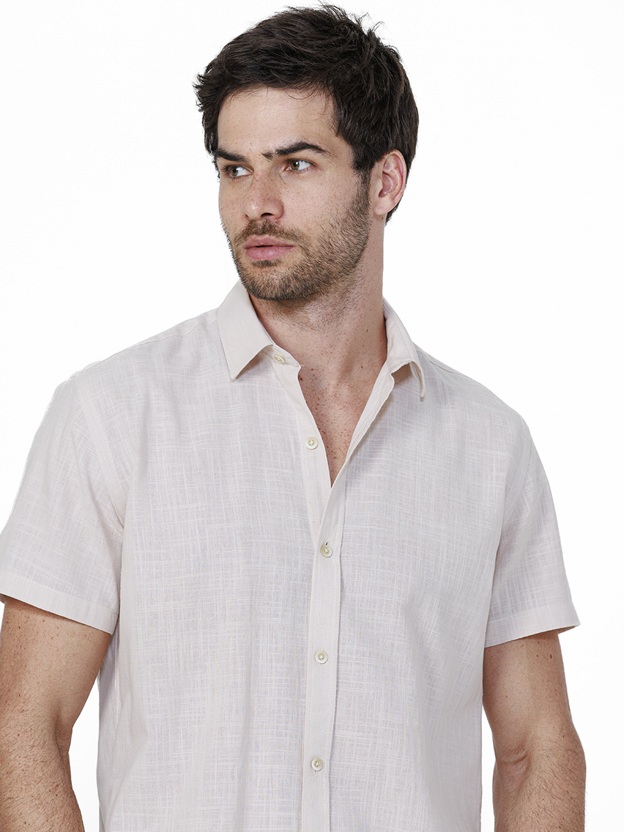 A Camisa de Manga Curta Slub é uma peça casual que se destaca pelo visual leve e naturalmente texturizado.