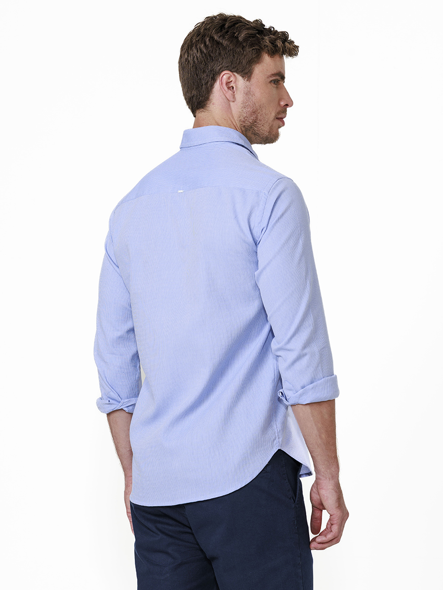A Camisa Masculina de Manga Longa é confeccionada em tecido texturizado, que traz sofisticação e personalidade ao visual.