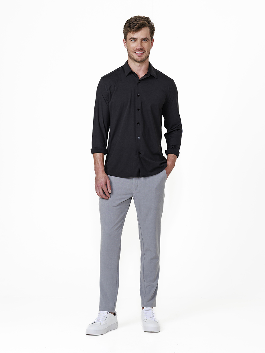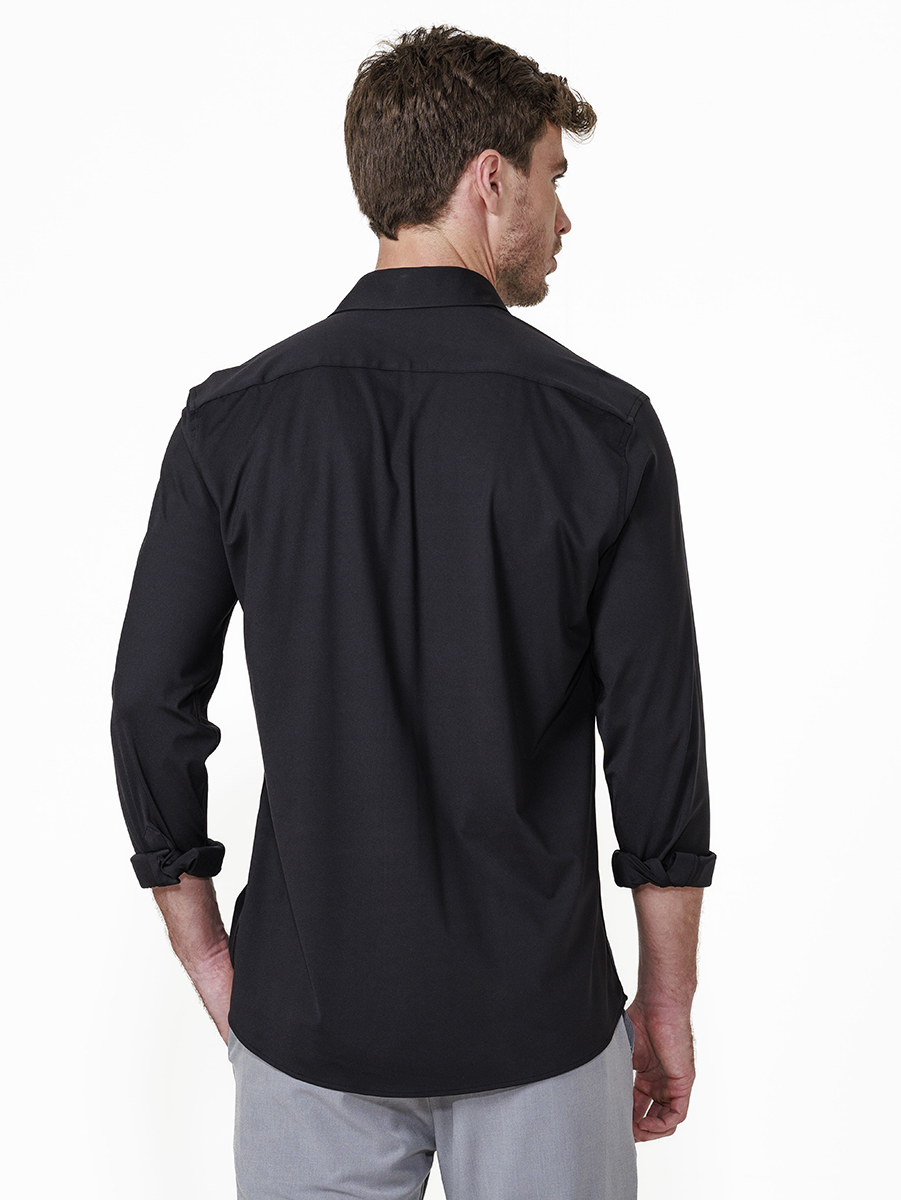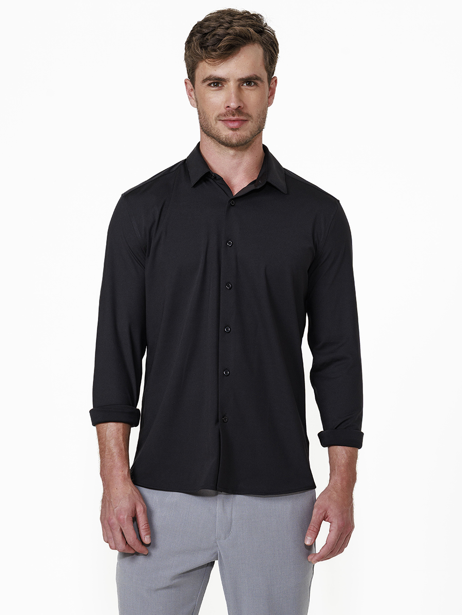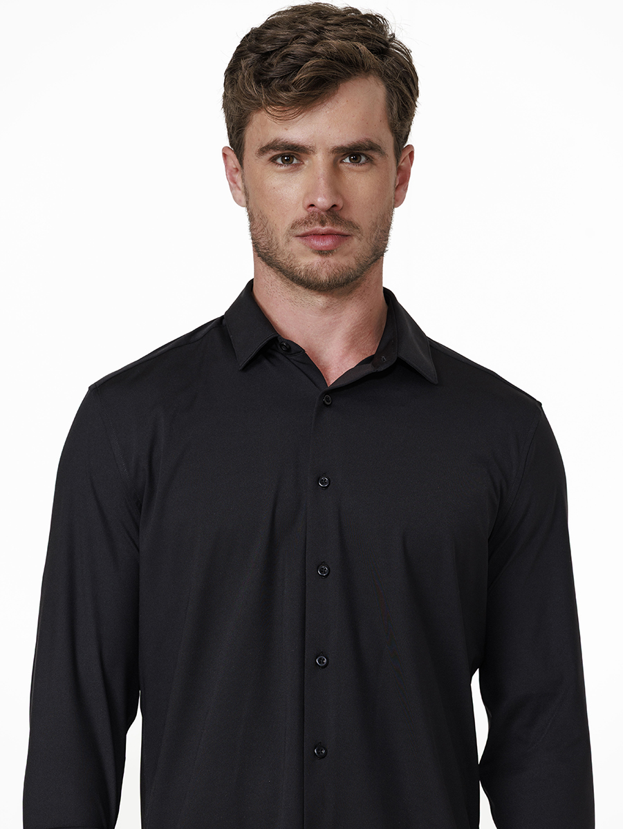 Alfaiataria Inteligente! Esta camisa é feita com fibras tecnológicas, compostas por 85% Poliamida e 15% Elastano, oferecendo uma experiência totalmente nova ao vestir camisas.