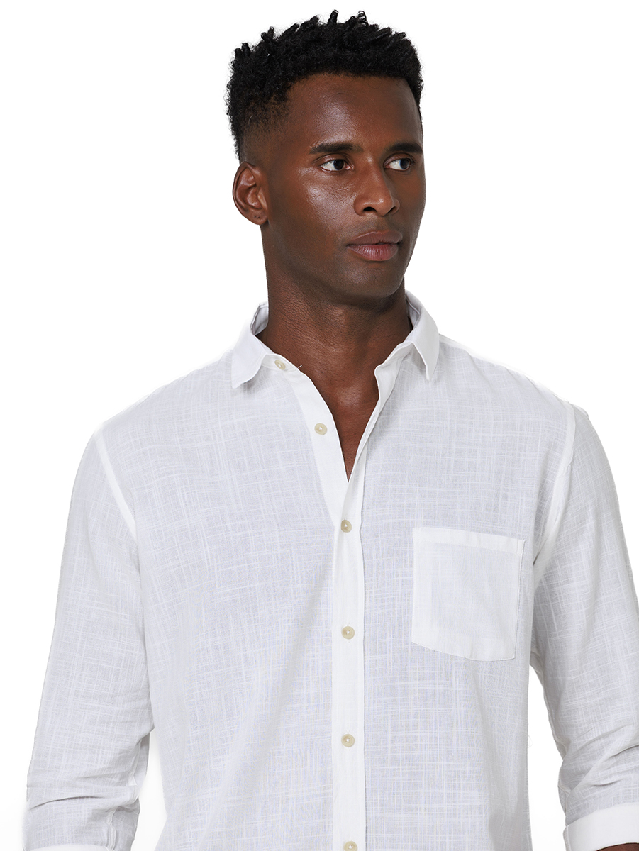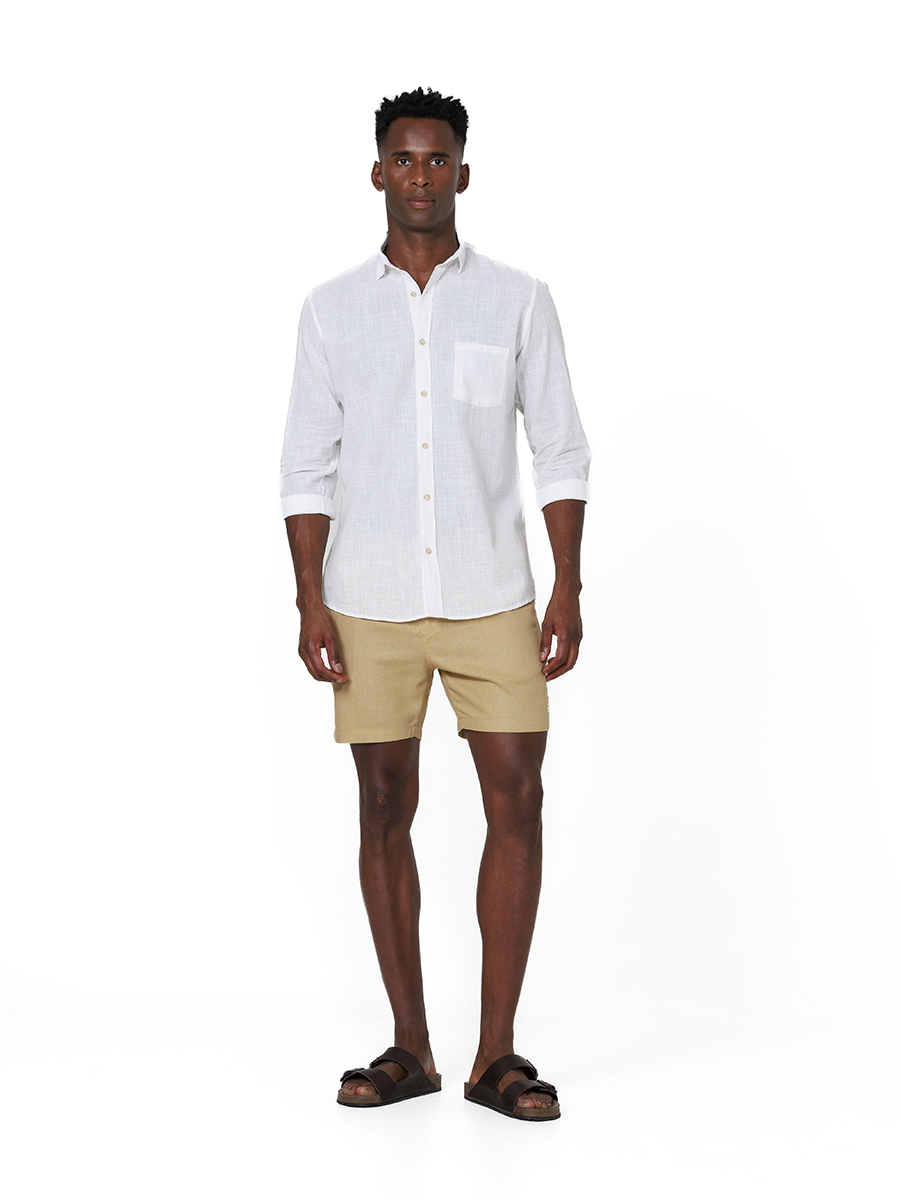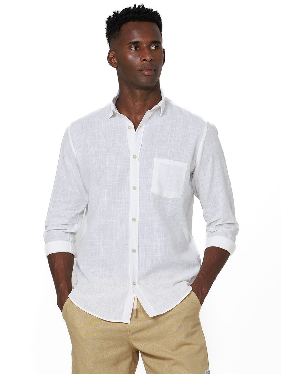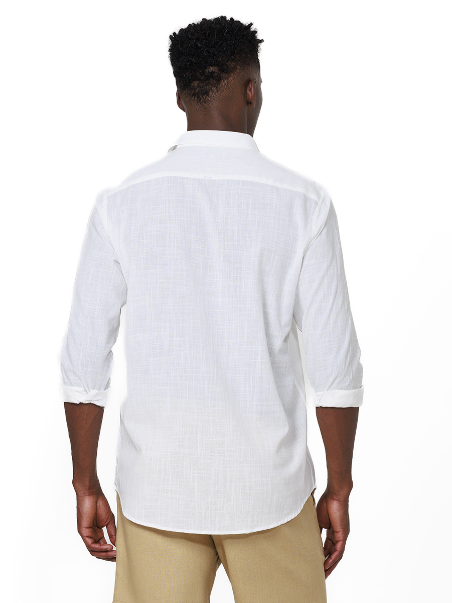 A Camisa Slub, confeccionada em 100% algodão, destaca-se pela trama mais aberta e pela mistura de fios finos e fios flamês rajados em sua construção. Modelagem Slim Fit