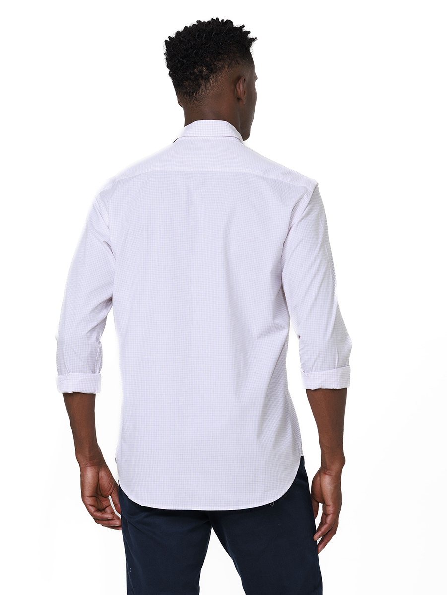 O padrão grid confere personalidade à peça, mantendo a versatilidade para diferentes ocasiões.