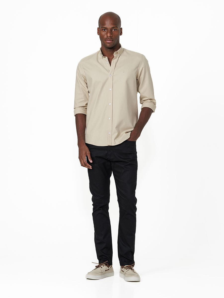 A Camisa Oxford de manga longa é uma peça clássica e sofisticada, confeccionada em tecido liso de alta qualidade, que oferece um toque suave e agradável ao corpo.
