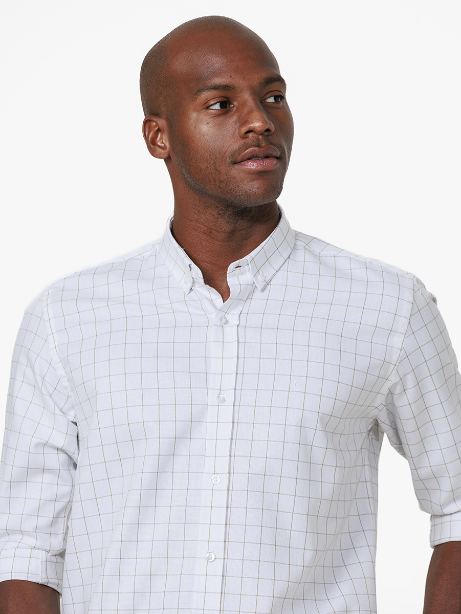 Clássica e sofisticada, esta Camisa Oxford com gramatura tradicional apresenta um elegante padrão grid, que adiciona personalidade e estilo ao visual.