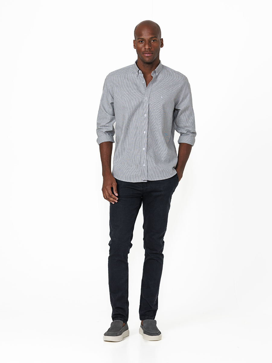 Clássica e sofisticada, esta Camisa Oxford com gramatura tradicional apresenta um elegante padrão listrado, que adiciona personalidade e estilo ao visual.