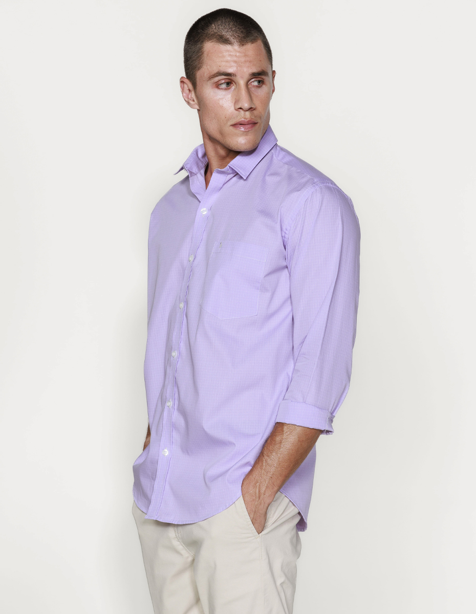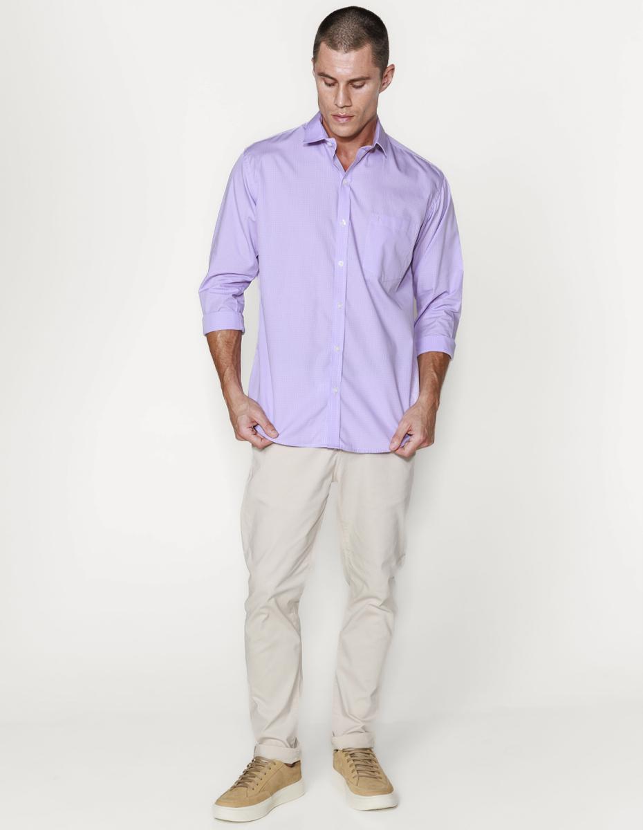 Camisa manga longa em tecido quadriculado, leve, ideal para os dias mais quentes