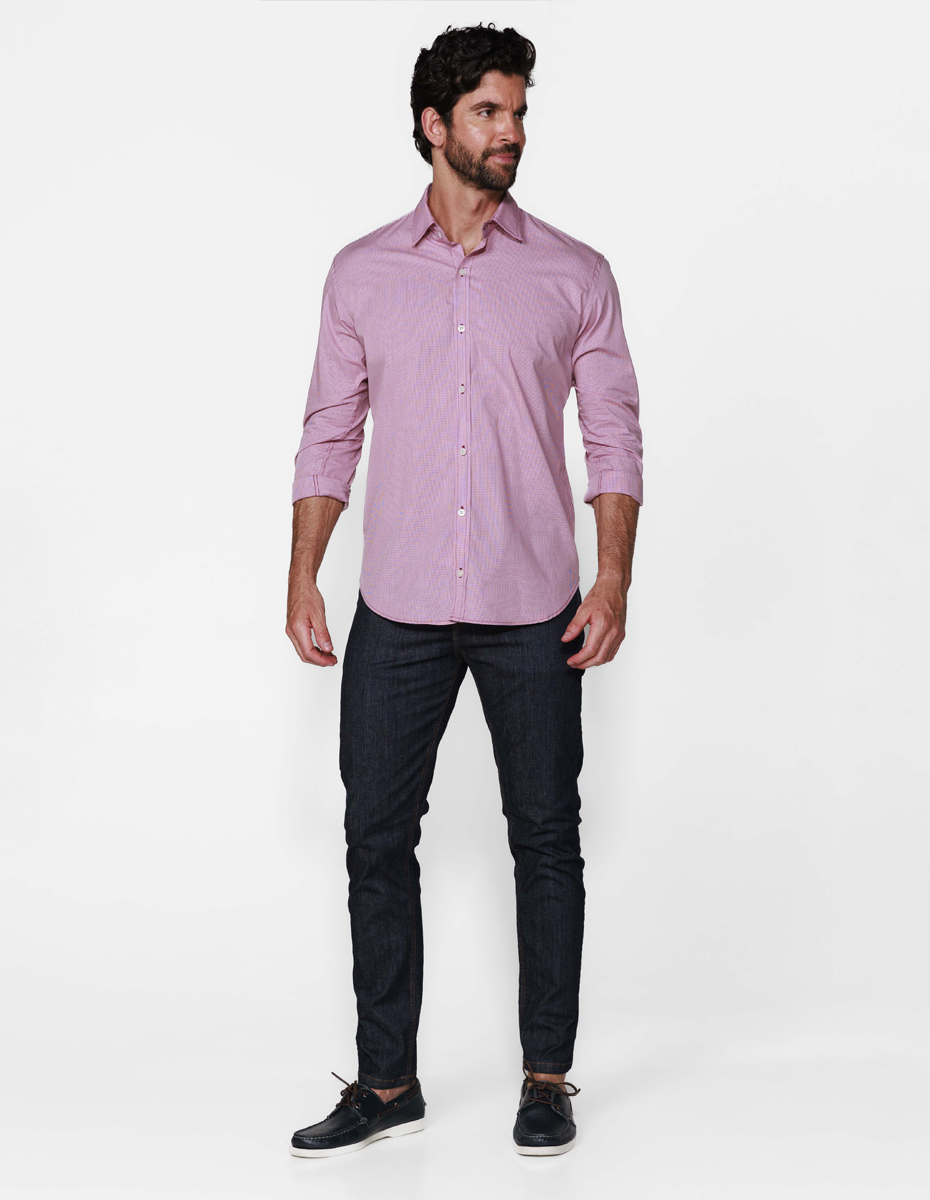 Camisa fio tinto mini grid, 100% algodão, tecido de alta qualidade e durável.