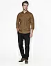 Colarinho estreito e de pala média, com botão na gola. Possui alça nas costas