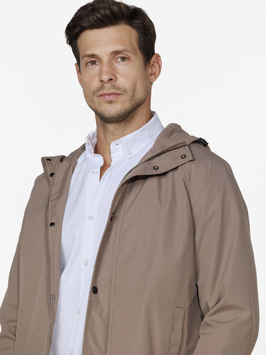 A modelagem Slim Fit proporciona um visual moderno e ajustado ao corpo, enquanto o capuz com regulagem agrega praticidade extra e design inteligente. O fechamento frontal com zíper embutido e abotoamento por botões de pressão garante um acabamento limpo e sofisticado. Conta com bolsos laterais discretos e funcionais, perfeitos para armazenar pequenos itens com segurança. Os punhos aplicados com detalhe reforçam o cuidado nos acabamentos.