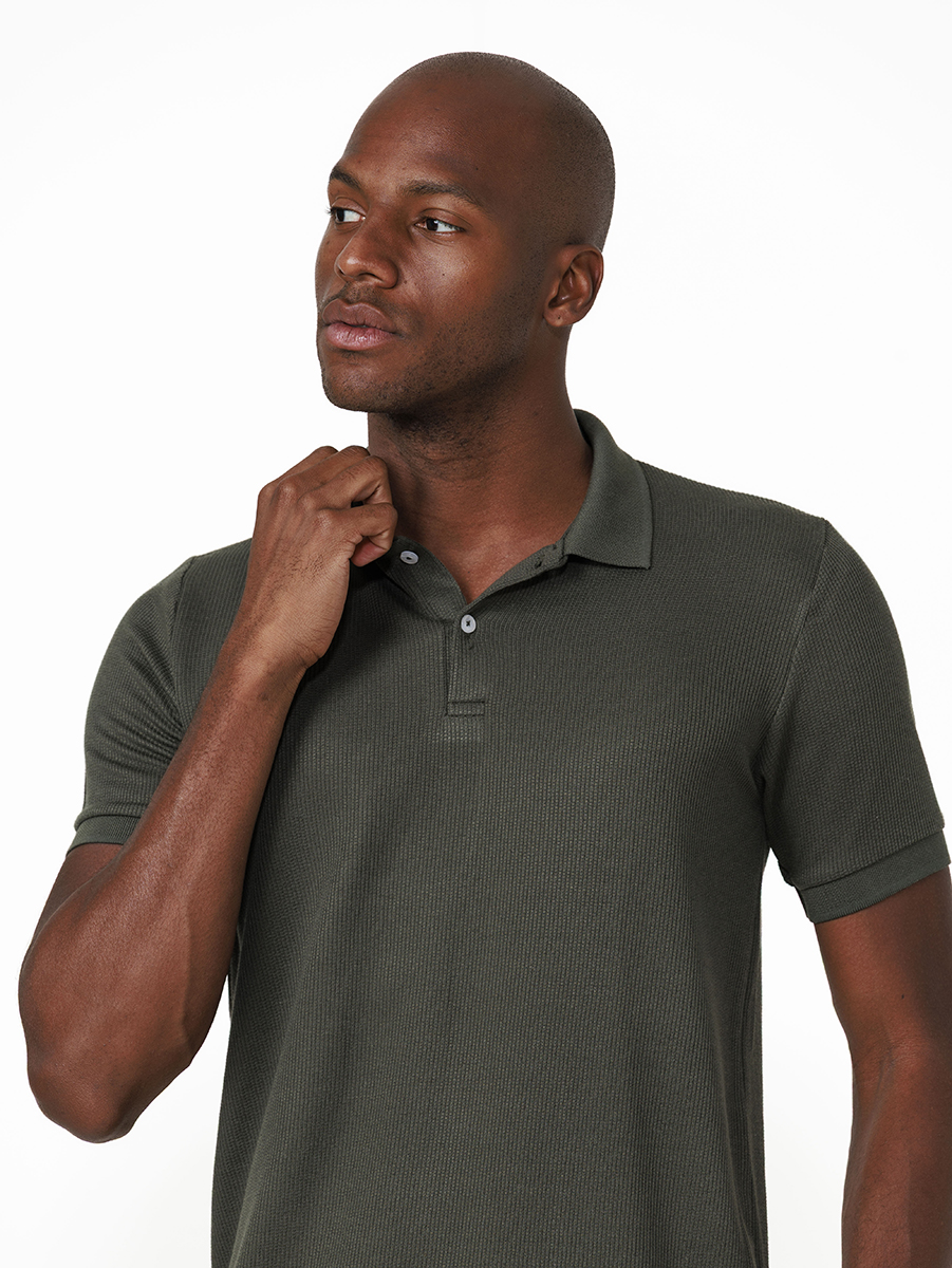 A Polo Masculina Malha Canelada combina sofisticação e versatilidade em uma peça moderna e atemporal.