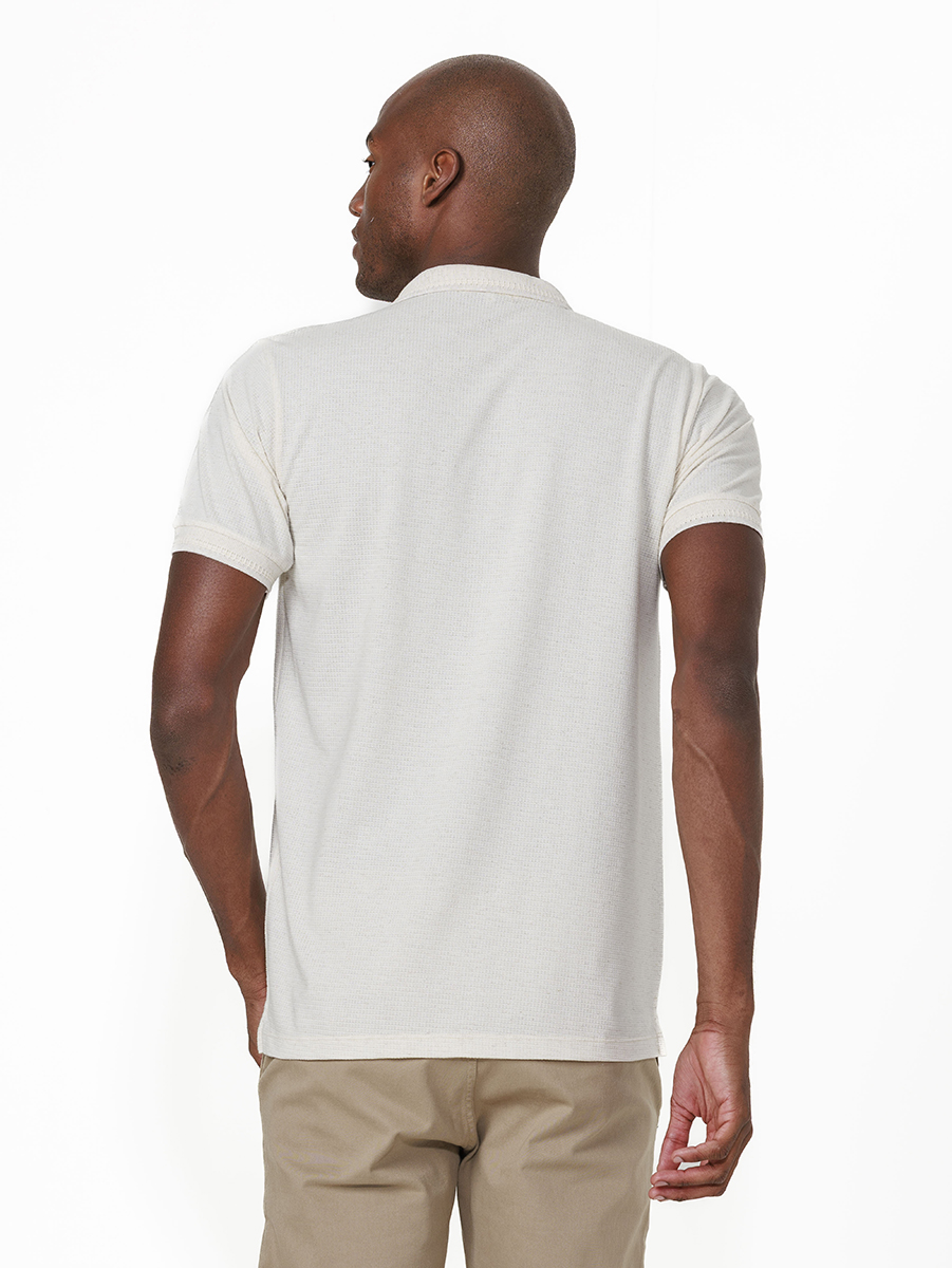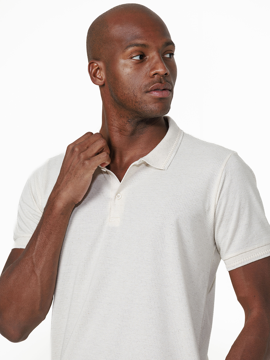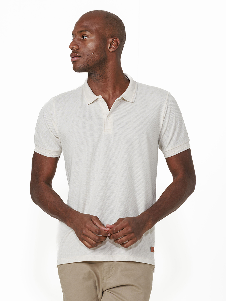 Esta polo de malha valoriza a elegância atemporal com textura maquinetada em alto relevo, oferecendo um visual refinado e marcante.