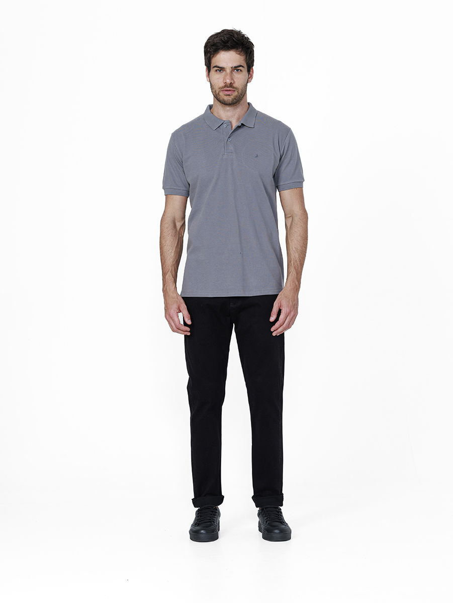 A textura característica do piquet traz um visual clássico e atemporal, ideal para composições casuais com aparência mais arrumada.