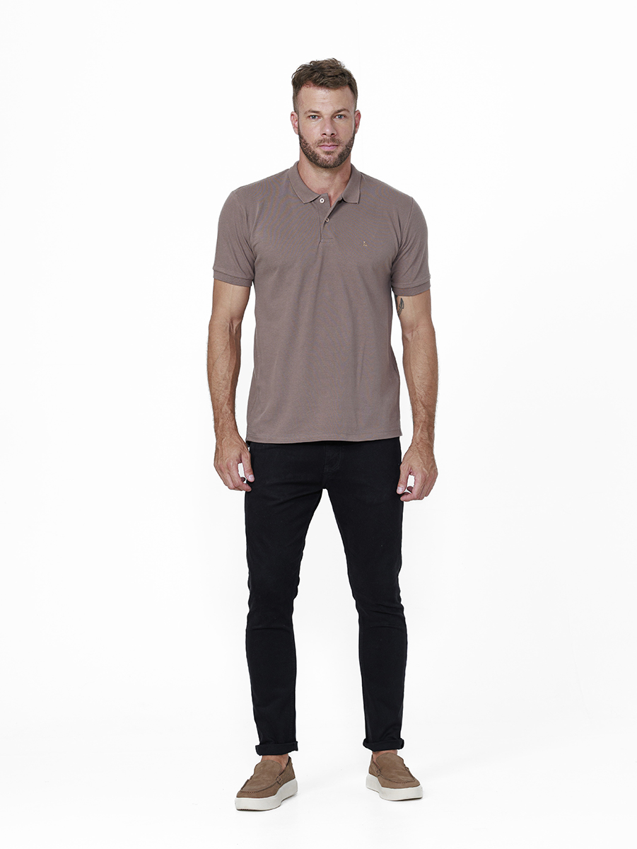 A textura característica do piquet traz um visual clássico e atemporal, ideal para composições casuais com aparência mais arrumada.