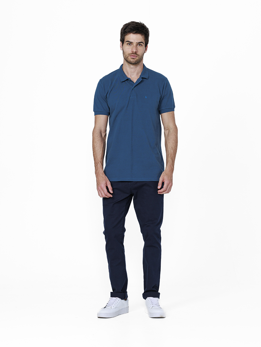 A textura característica do piquet traz um visual clássico e atemporal, ideal para composições casuais com aparência mais arrumada.