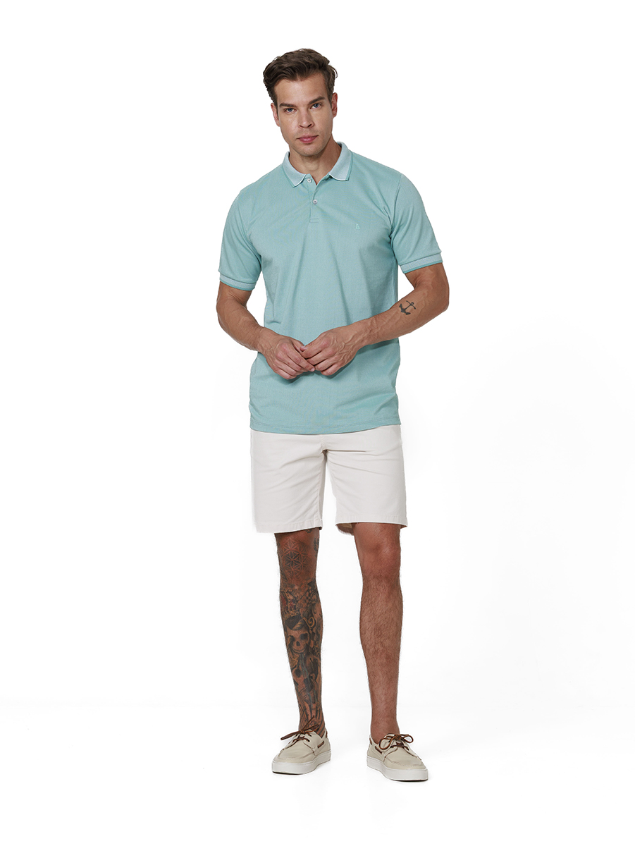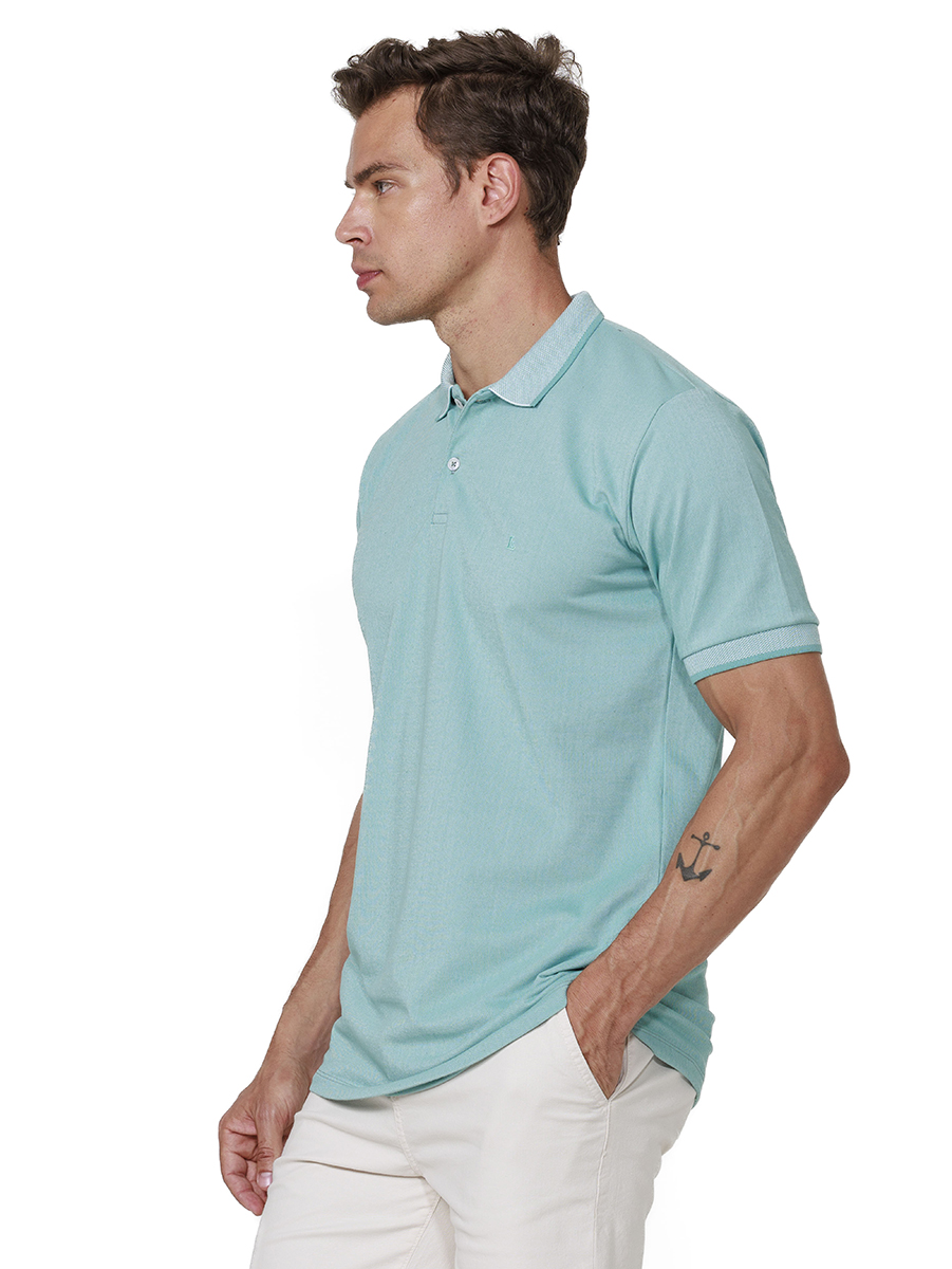 A Polo em Piquet Binado (50% algodão e 50% poliéster) combina conforto e um visual clean para o dia a dia.