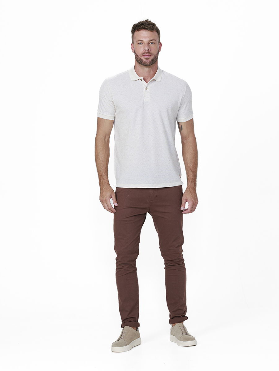 A Polo em piquet marcado se destaca pela textura evidente, que traz mais personalidade e um visual casual bem resolvido.