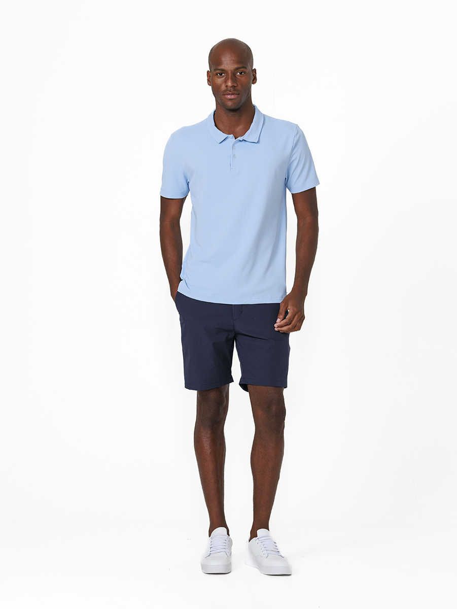 Confeccionada em malha piquet de poliamida, oferece respirabilidade, secagem rápida e resistência, mantendo o visual sempre impecável.