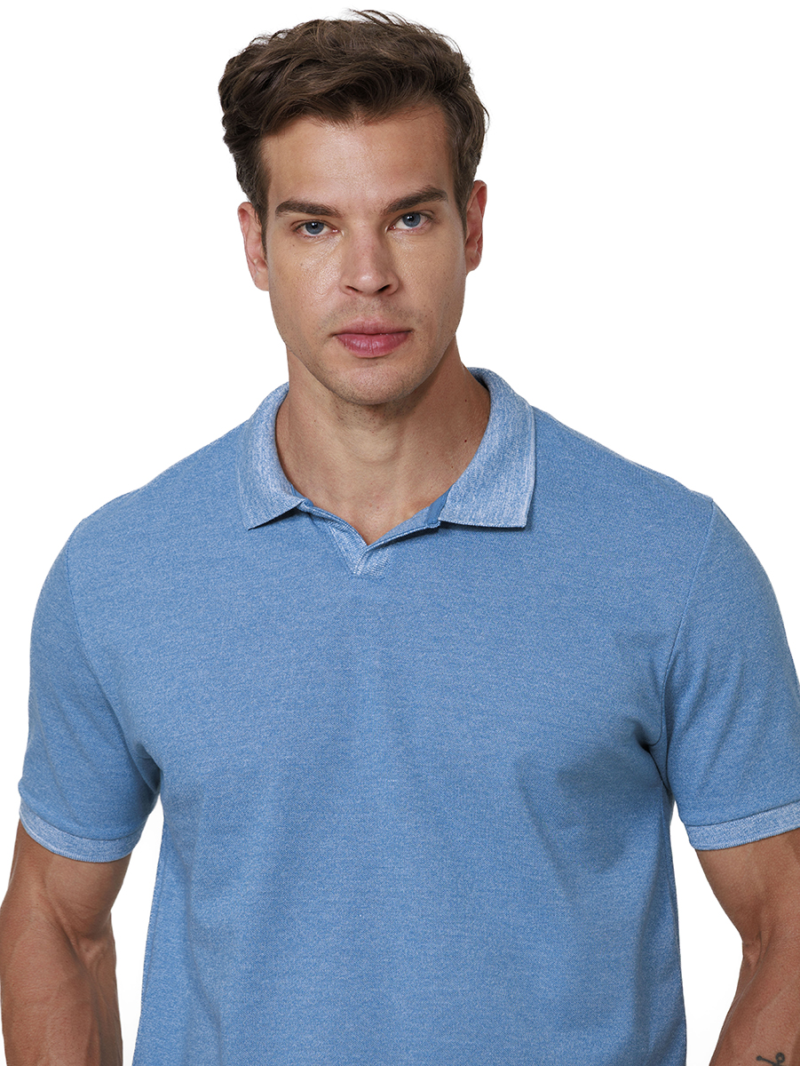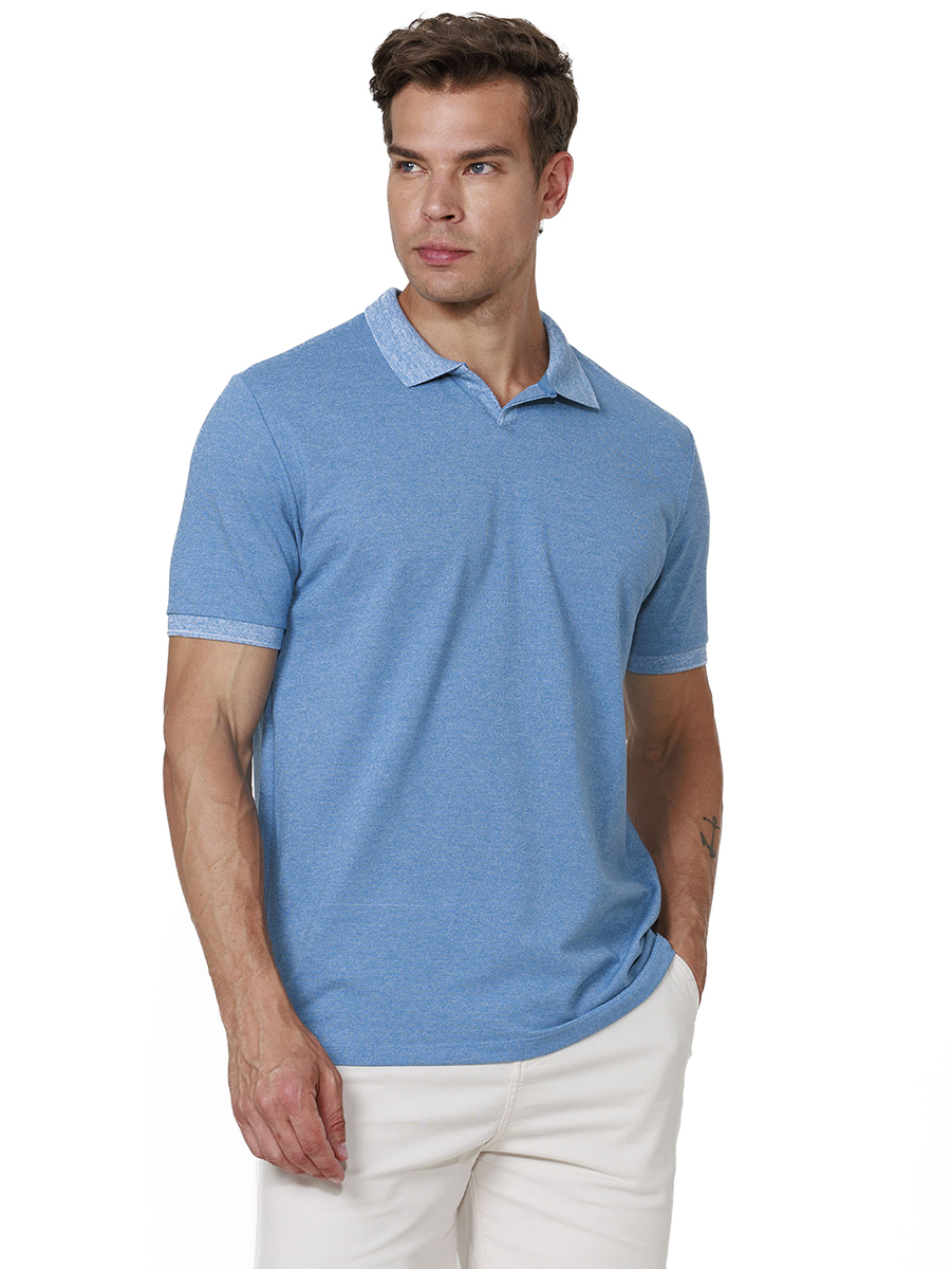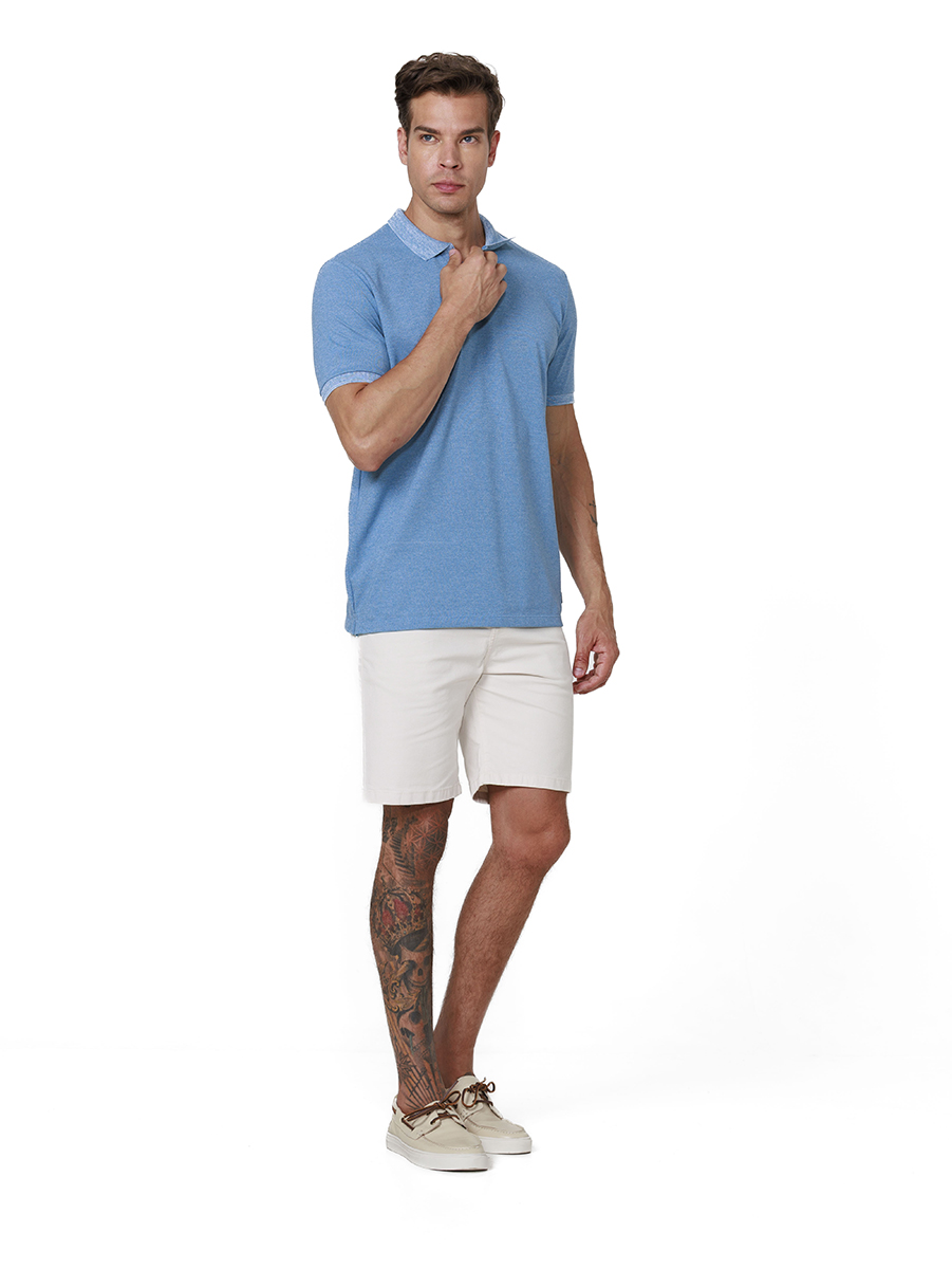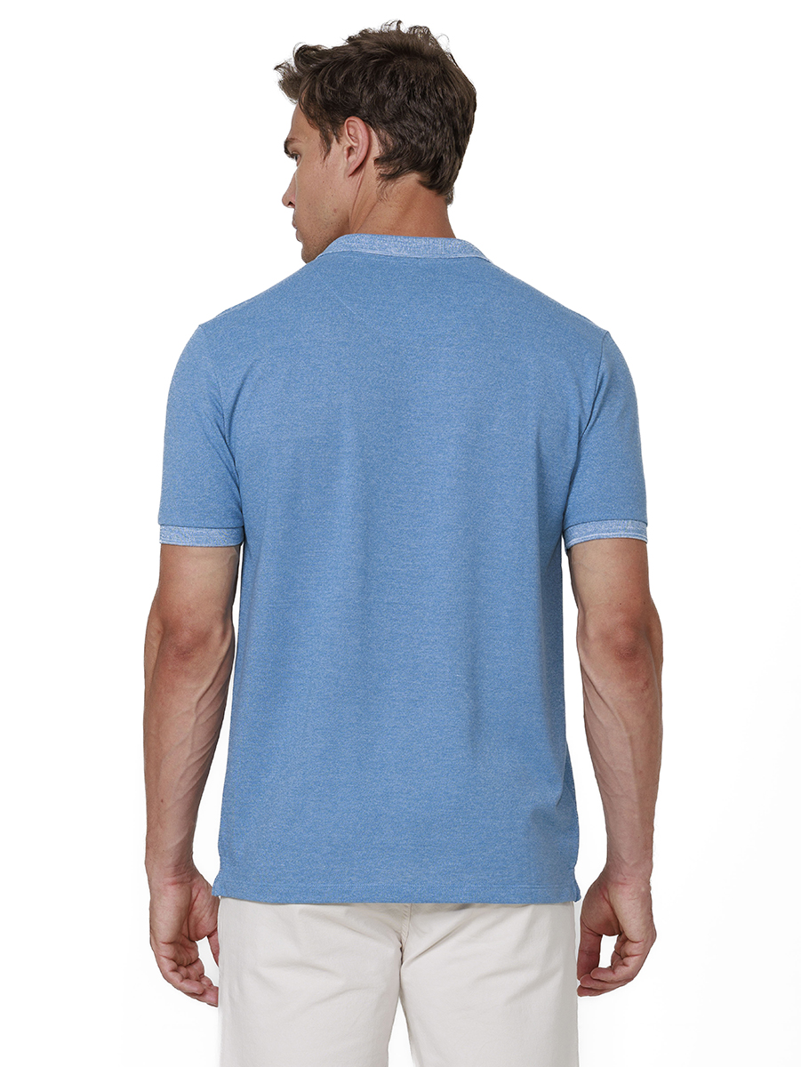 Confeccionada em piquet molinê, combina textura marcada, toque agradável e visual mesclado característico, reforçando seu aspecto moderno e descontraído.