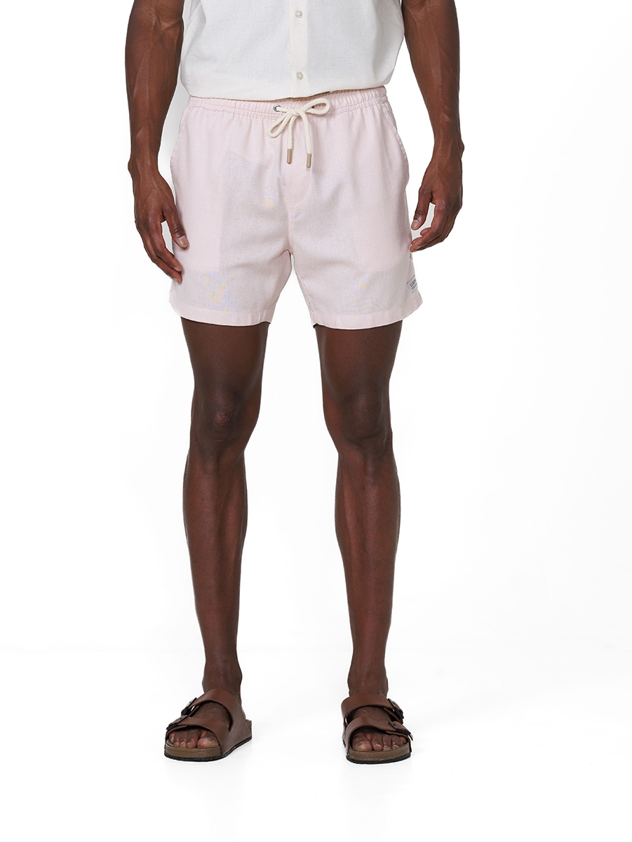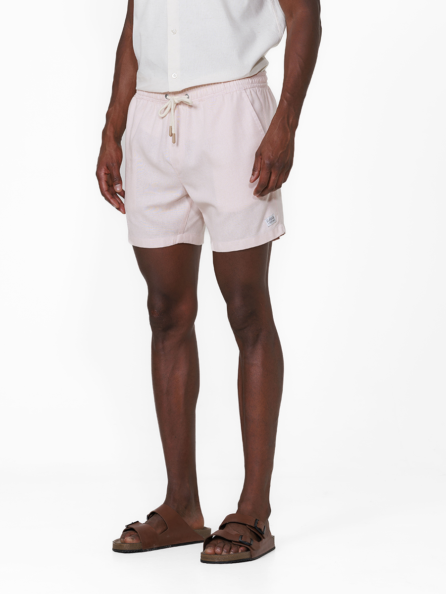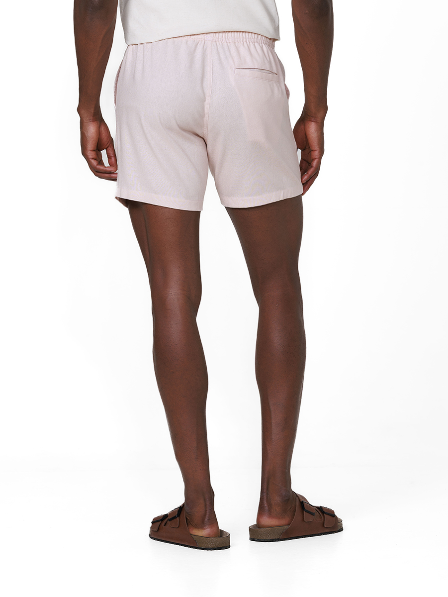 Short com elástico em tecido de blend de fibras, composto por viscose e linho.