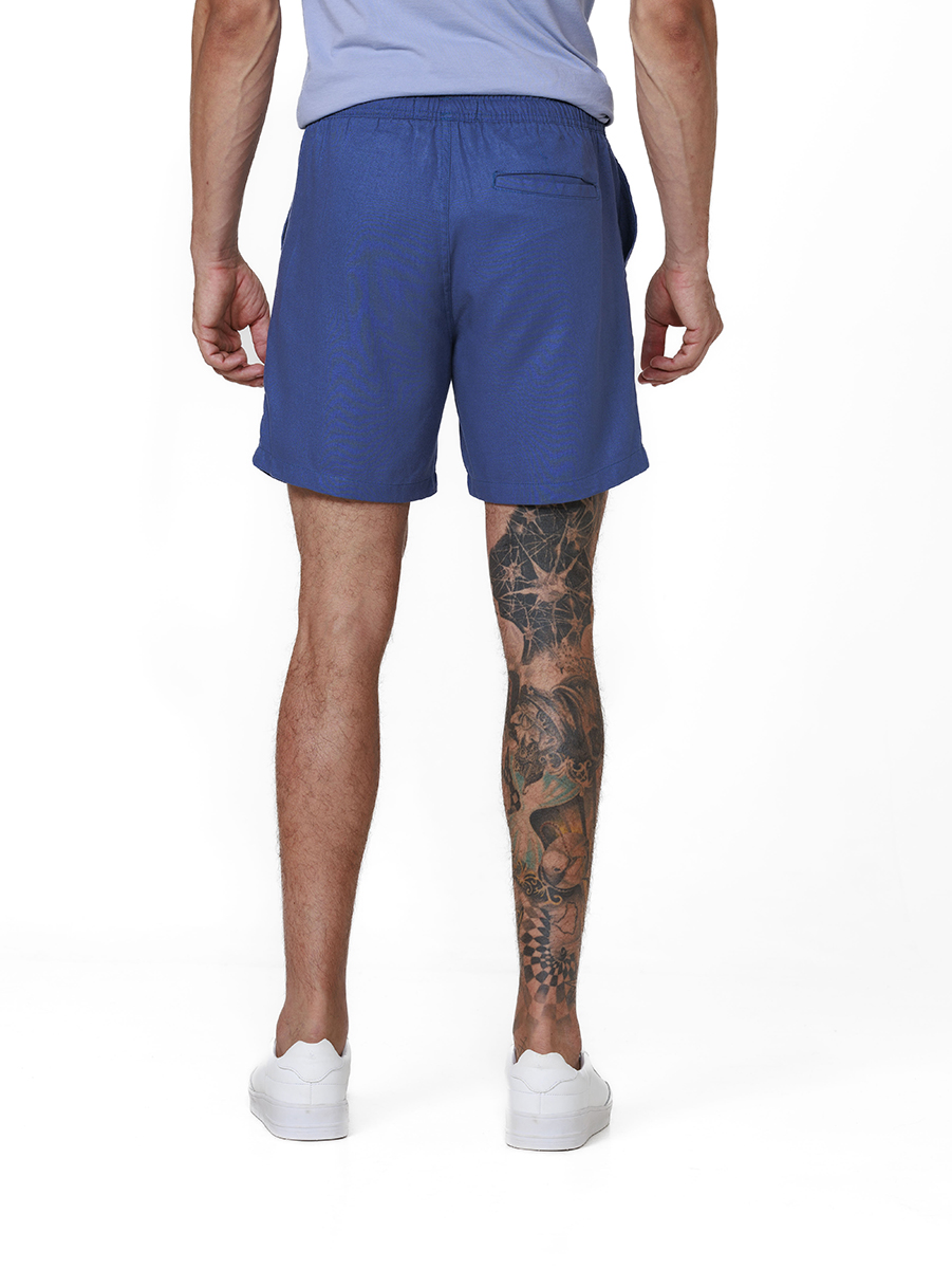 Short com elástico em tecido de blend de fibras, composto por viscose e linho.