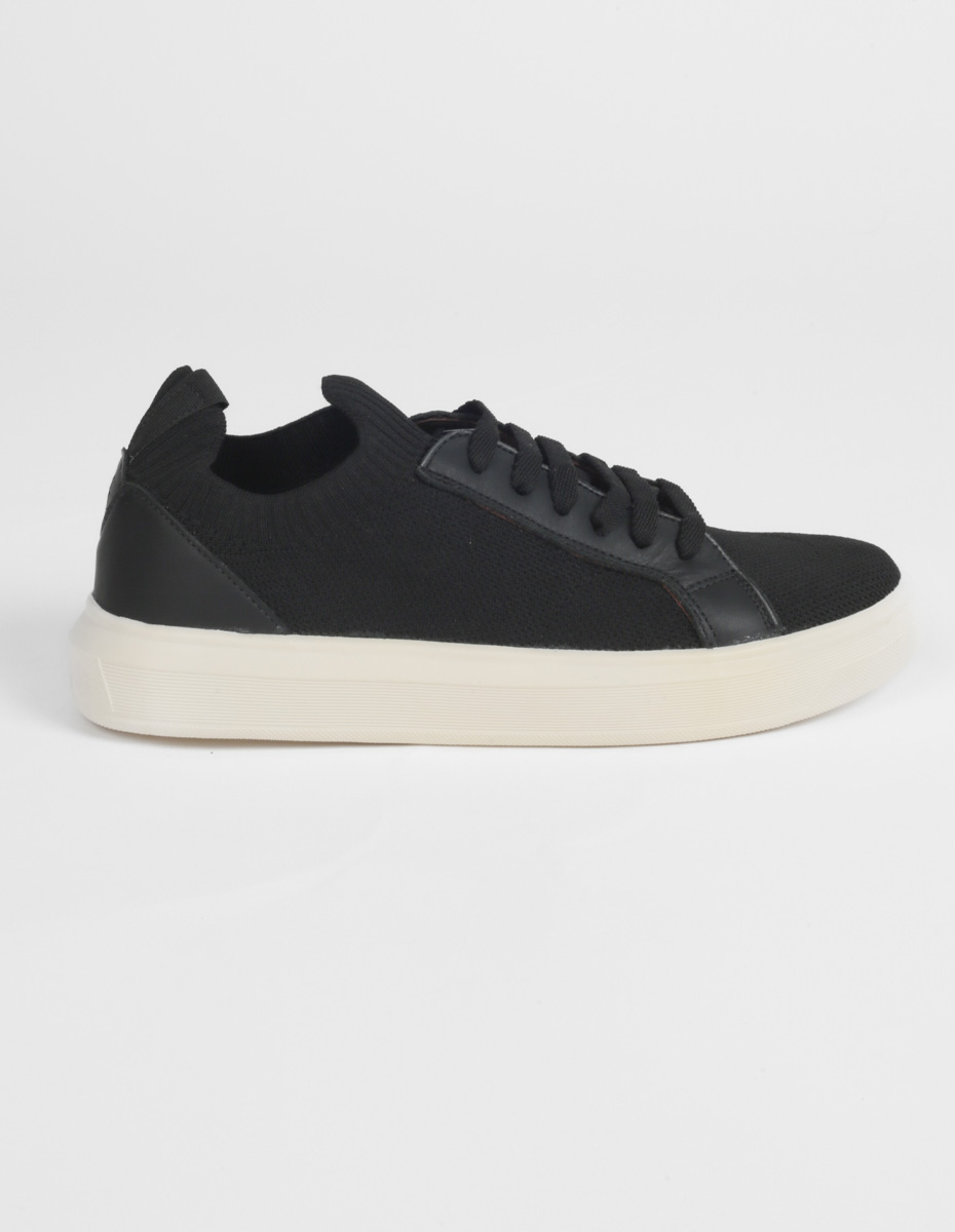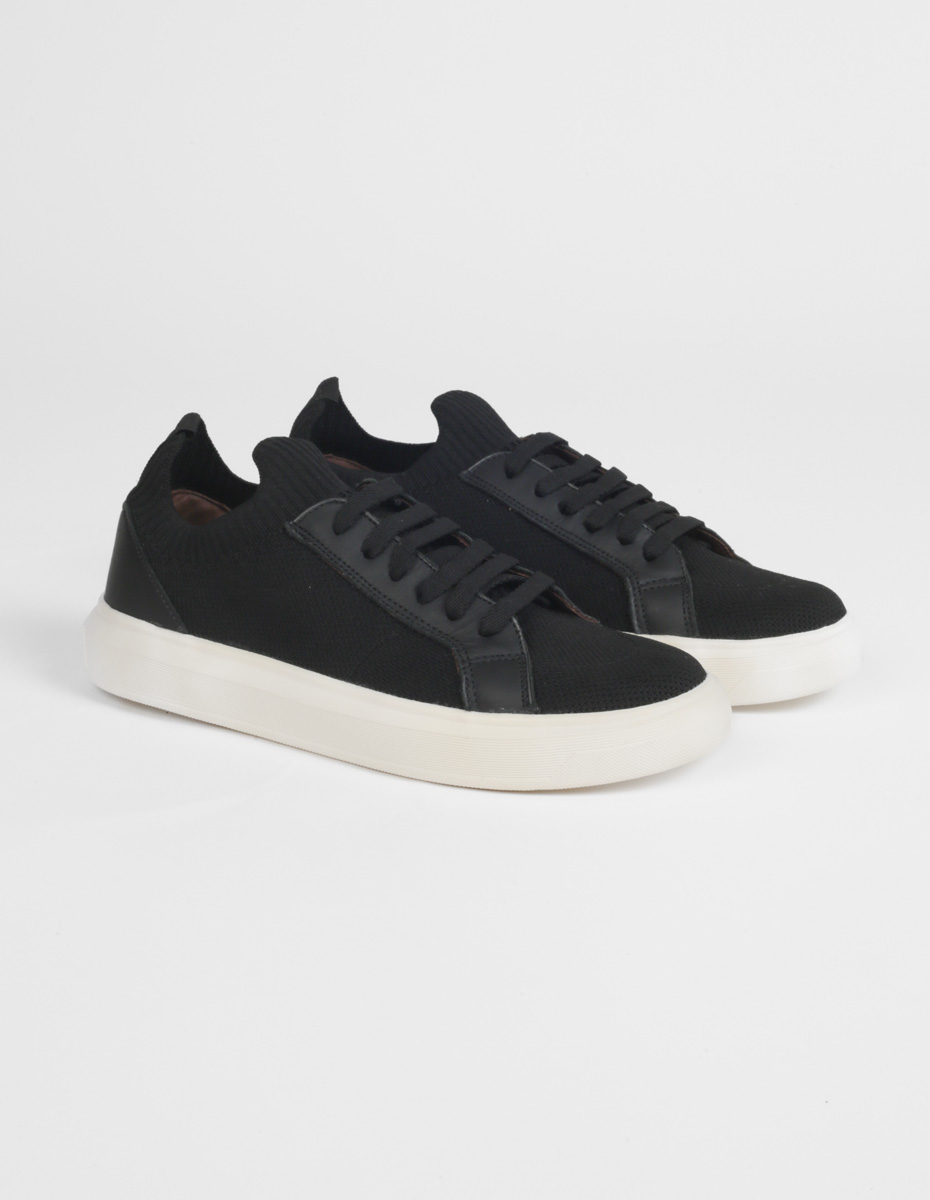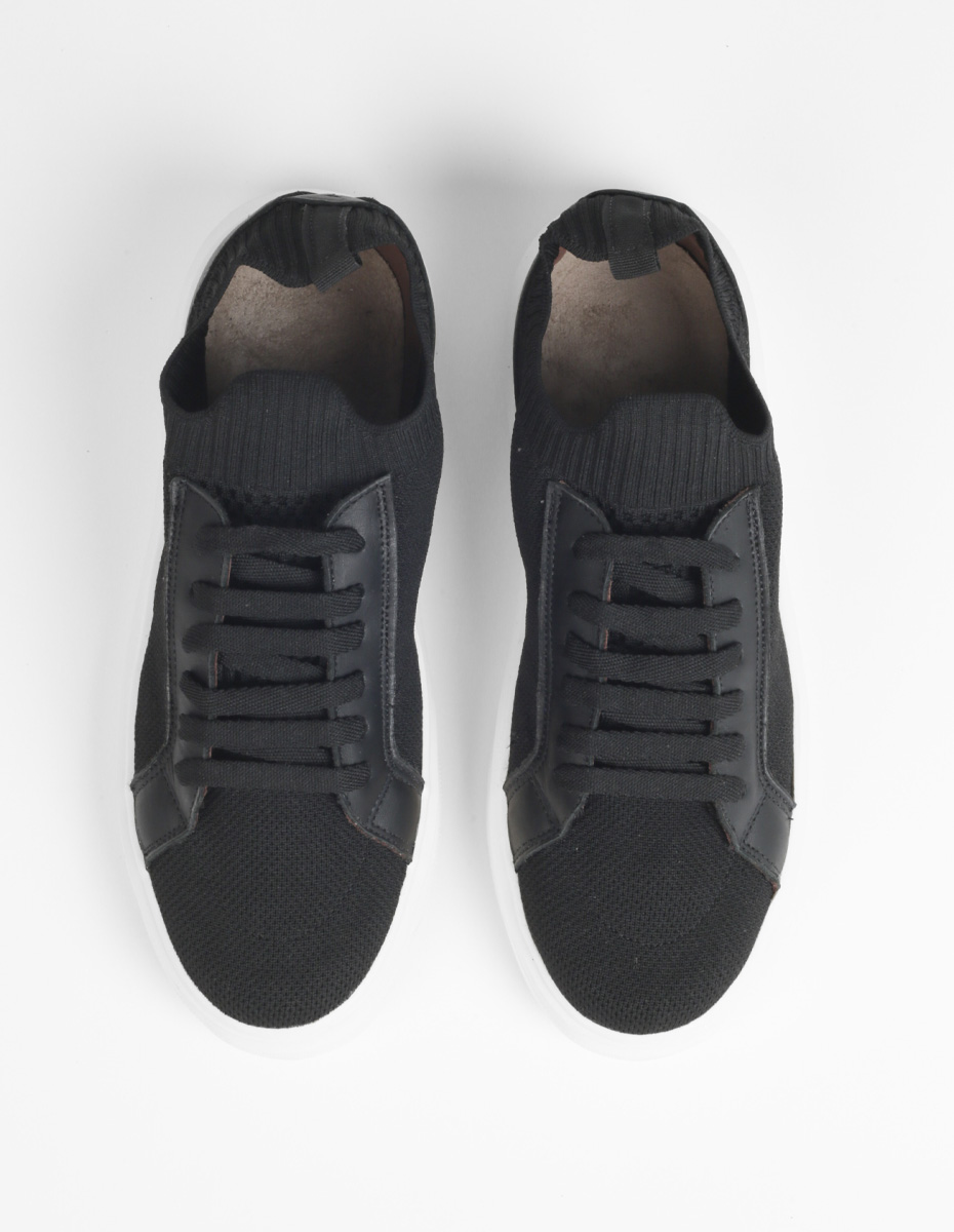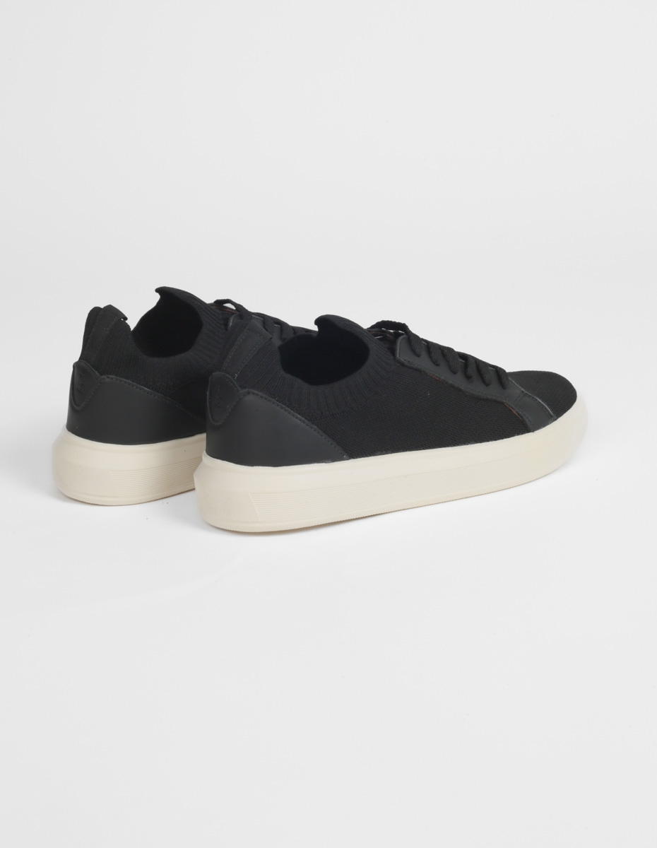 O cabedal em malha knit oferece leveza e conforto, enquanto as aplicações de detalhes em couro acrescentam estrutura e estilo ao design.