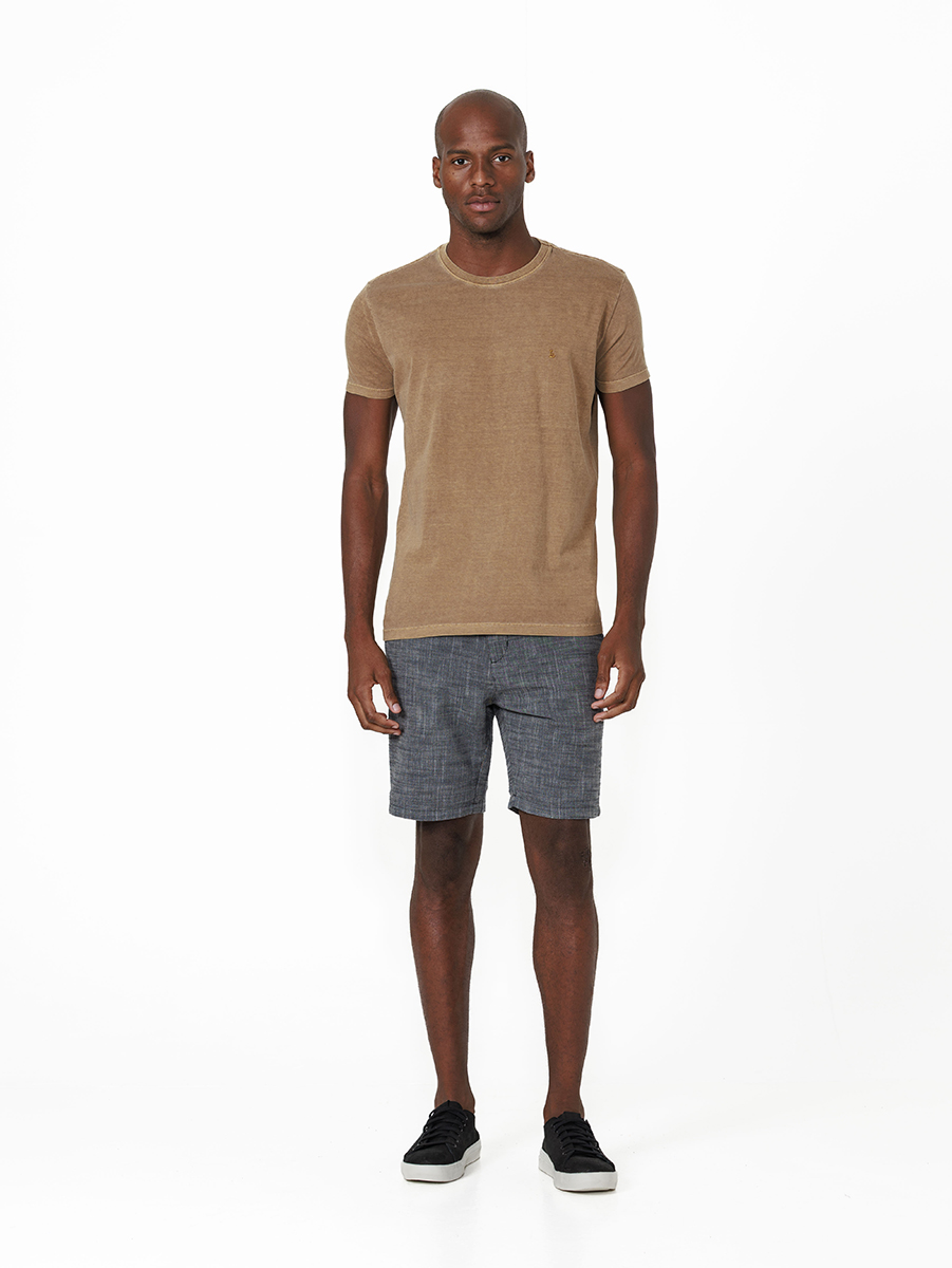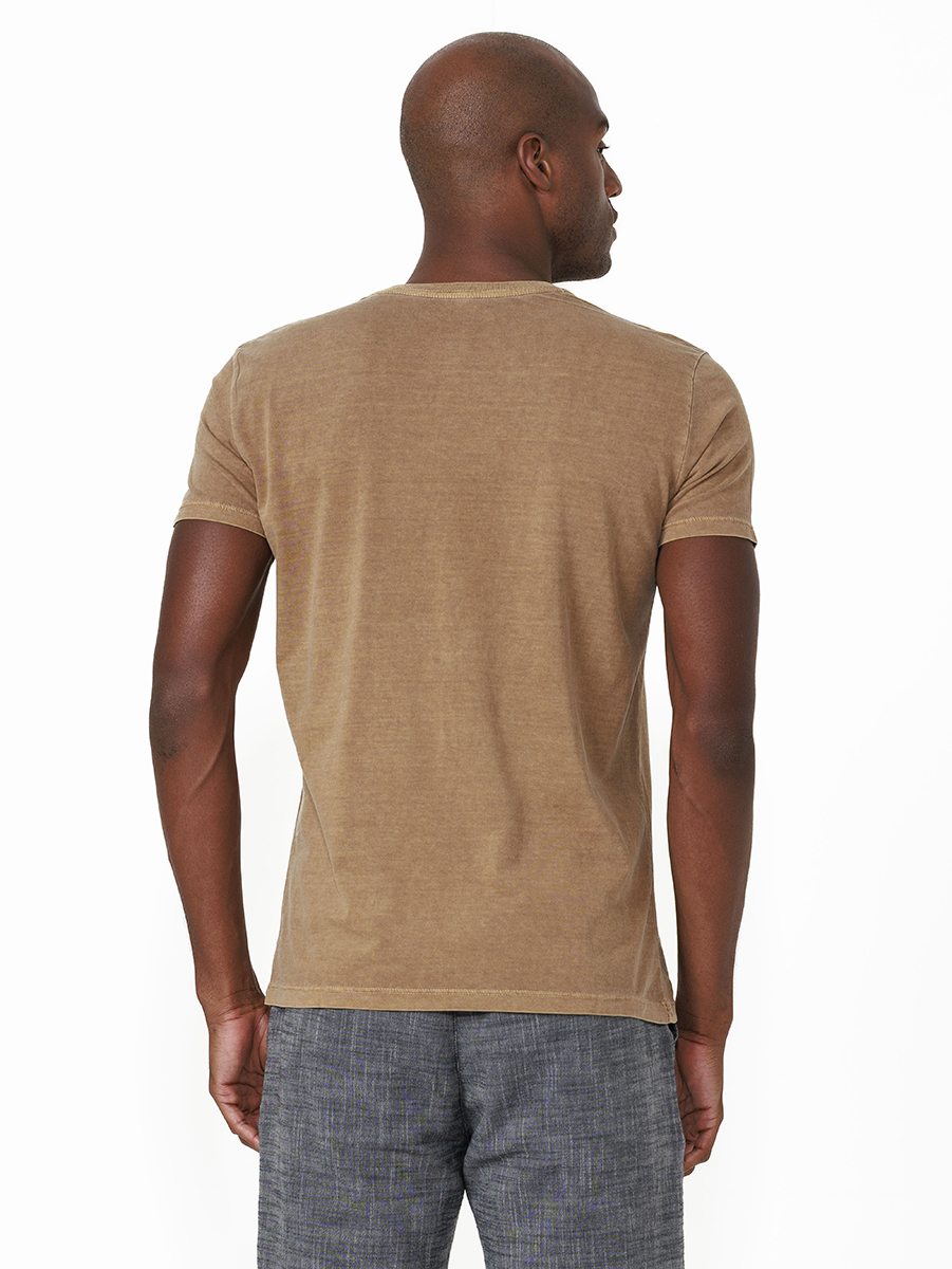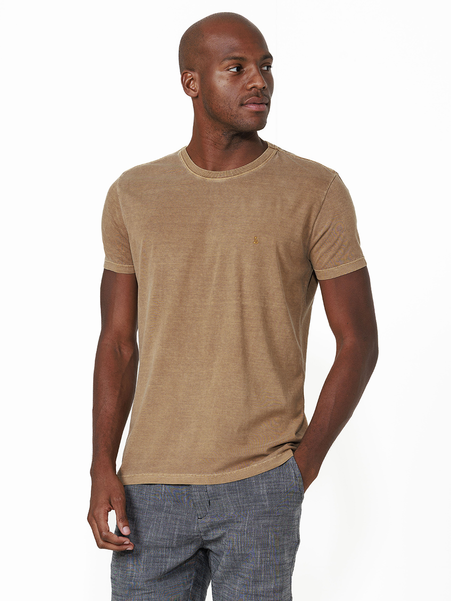 T-shirt em malha stone 100% algodão, com cores tingidas e stonadas (desgastadas) após a peça ser costurada.