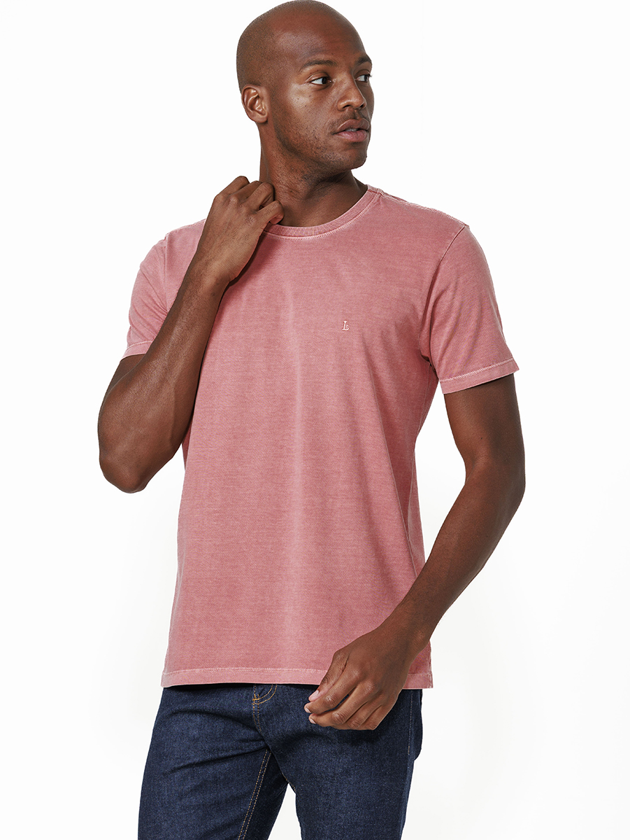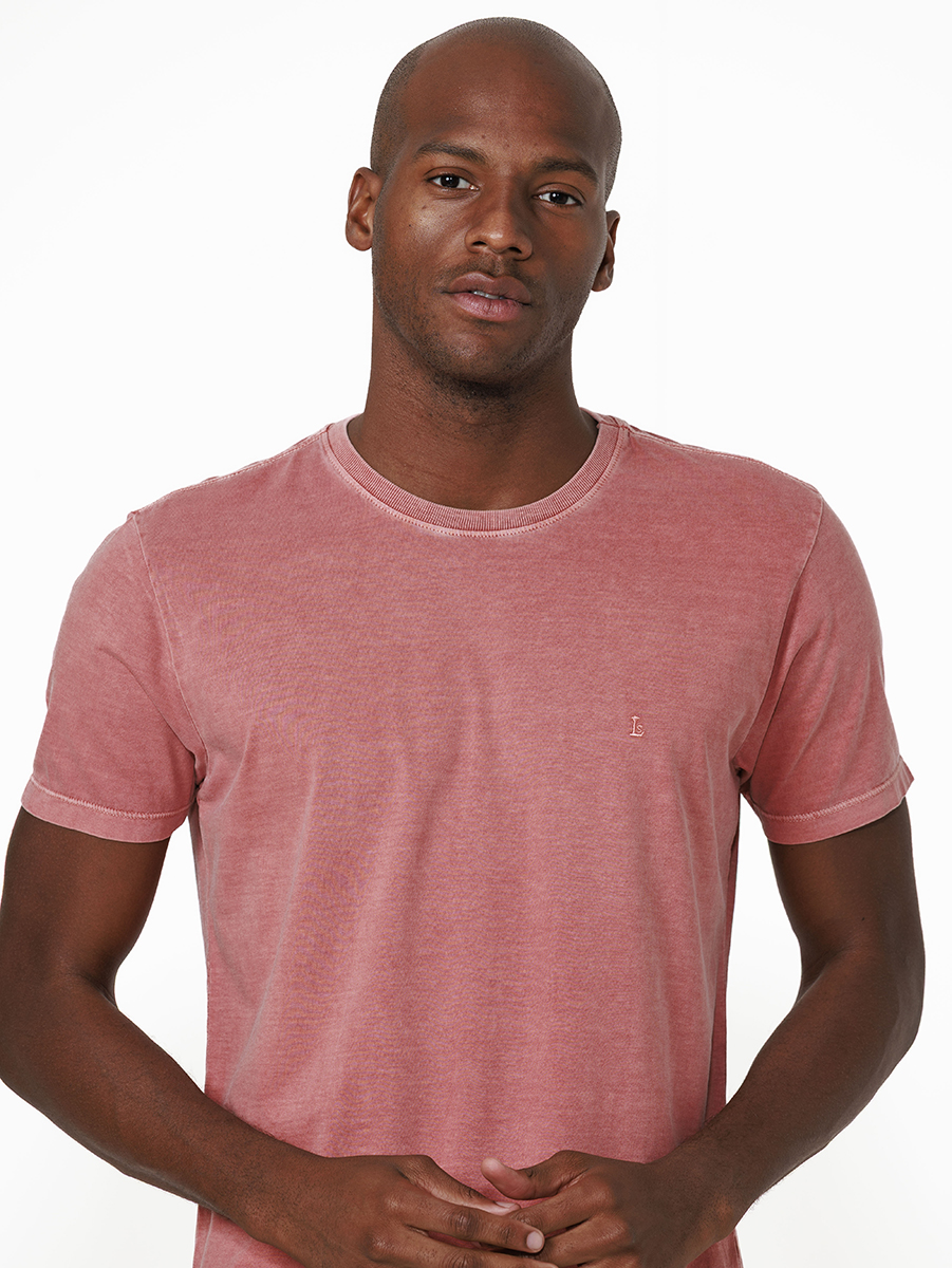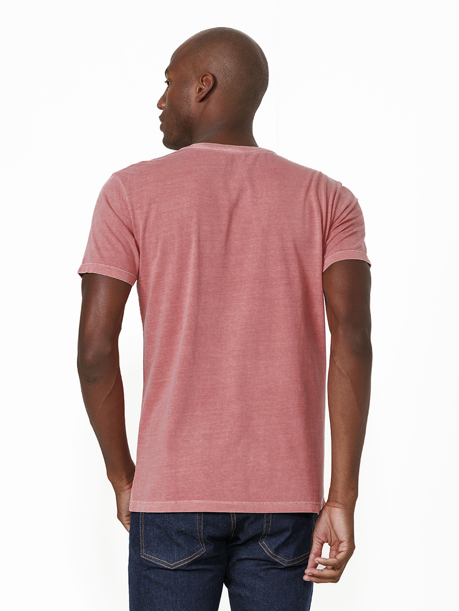 T-shirt em malha stone 100% algodão, com cores tingidas e stonadas (desgastadas) após a peça ser costurada.
