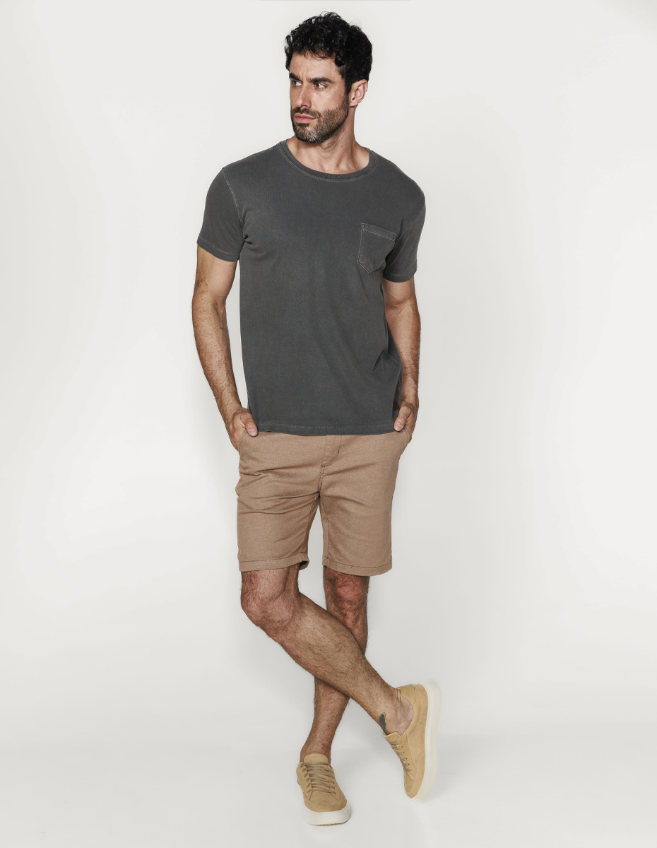 T-Shirt tecido encorpado, gola careca, com bolso e sem bordado.