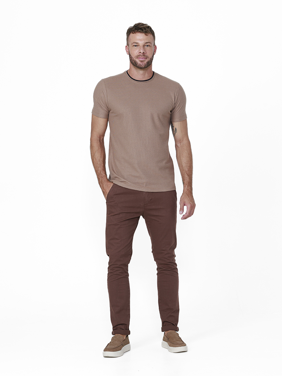 O detalhe de contraste sutil na gola acrescenta um toque de refinamento, reforçando a proposta versátil da peça.