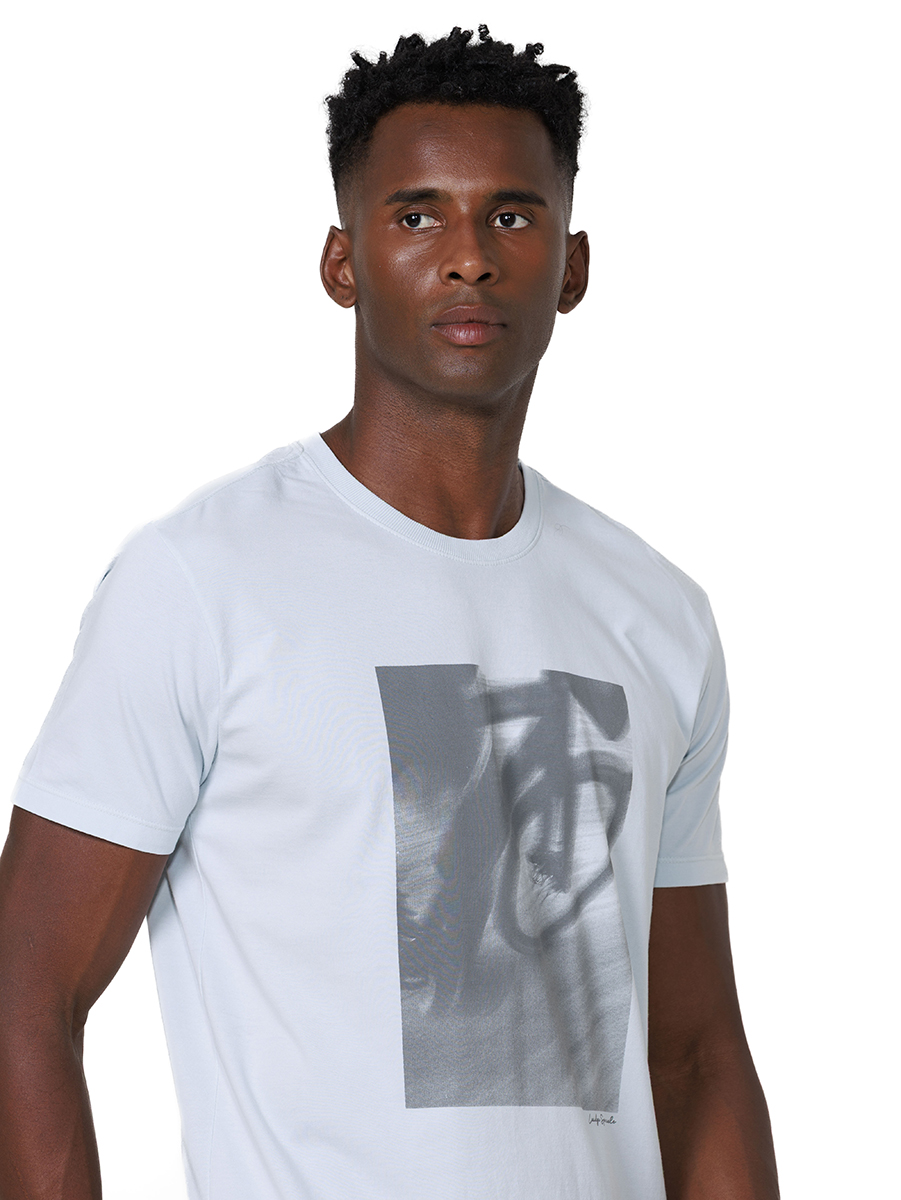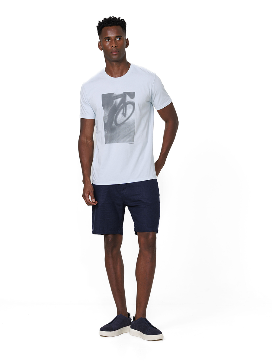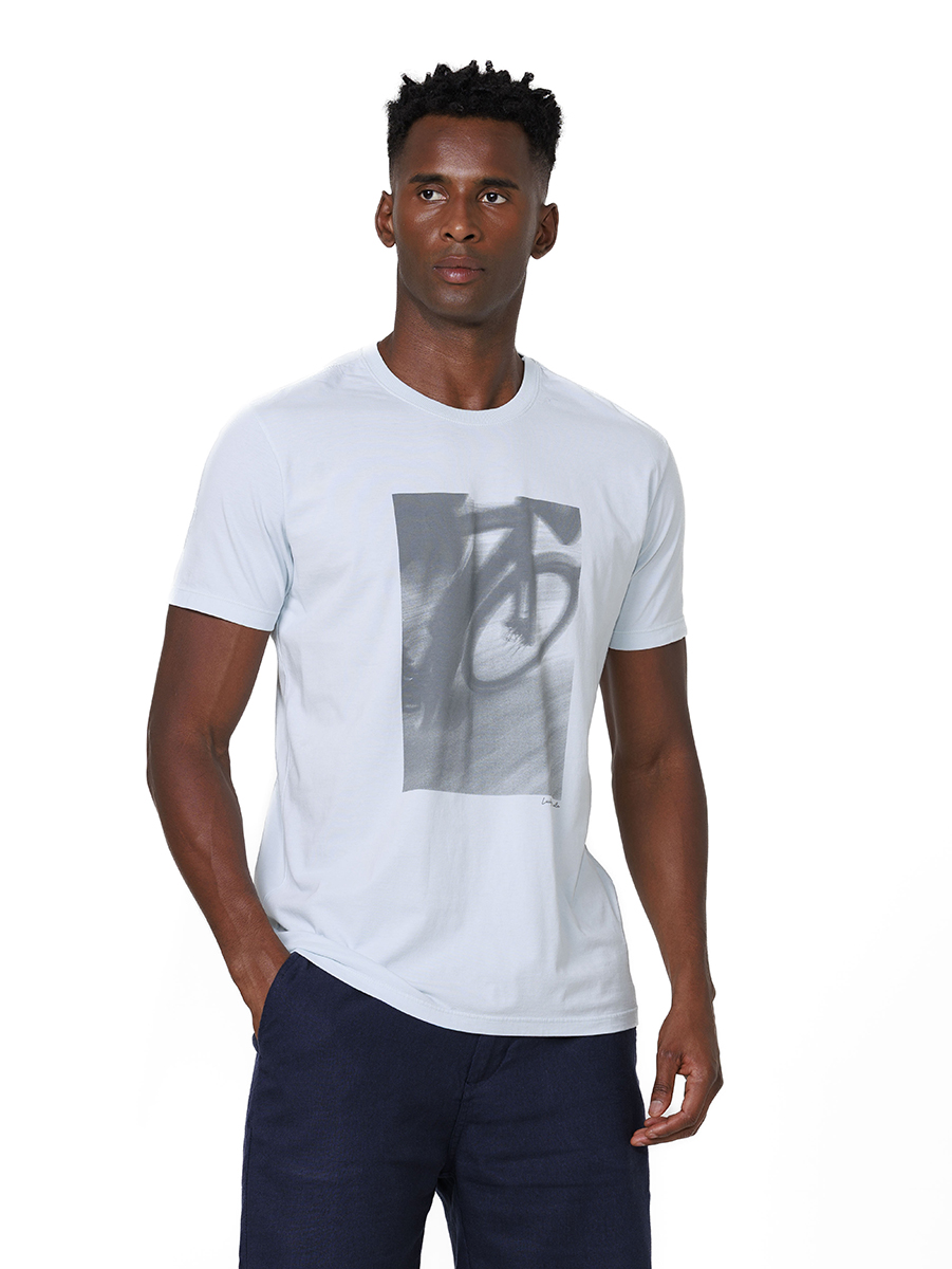 O destaque fica por conta do silk frontal, que traz uma imagem em estilo fotográfico de uma bicicleta em movimento, a imagem em tons neutros cria um efeito moderno e traz personalidade à peça.