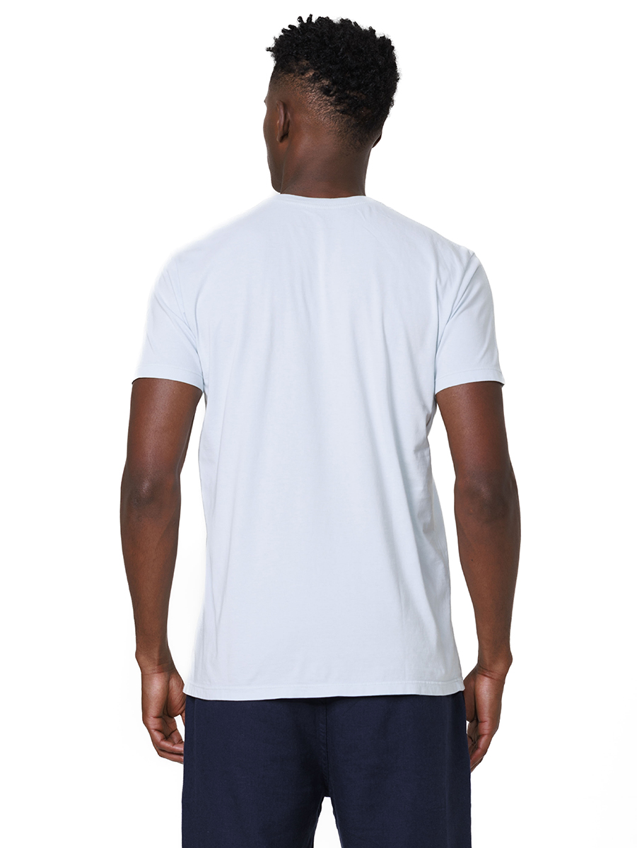 A t-shirt confeccionada em algodão fio 30.1 penteado, que oferece toque macio, boa durabilidade e caimento confortável.