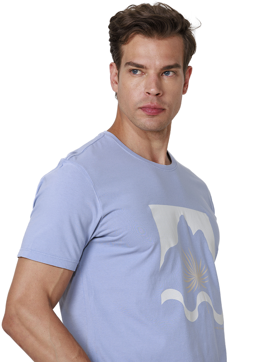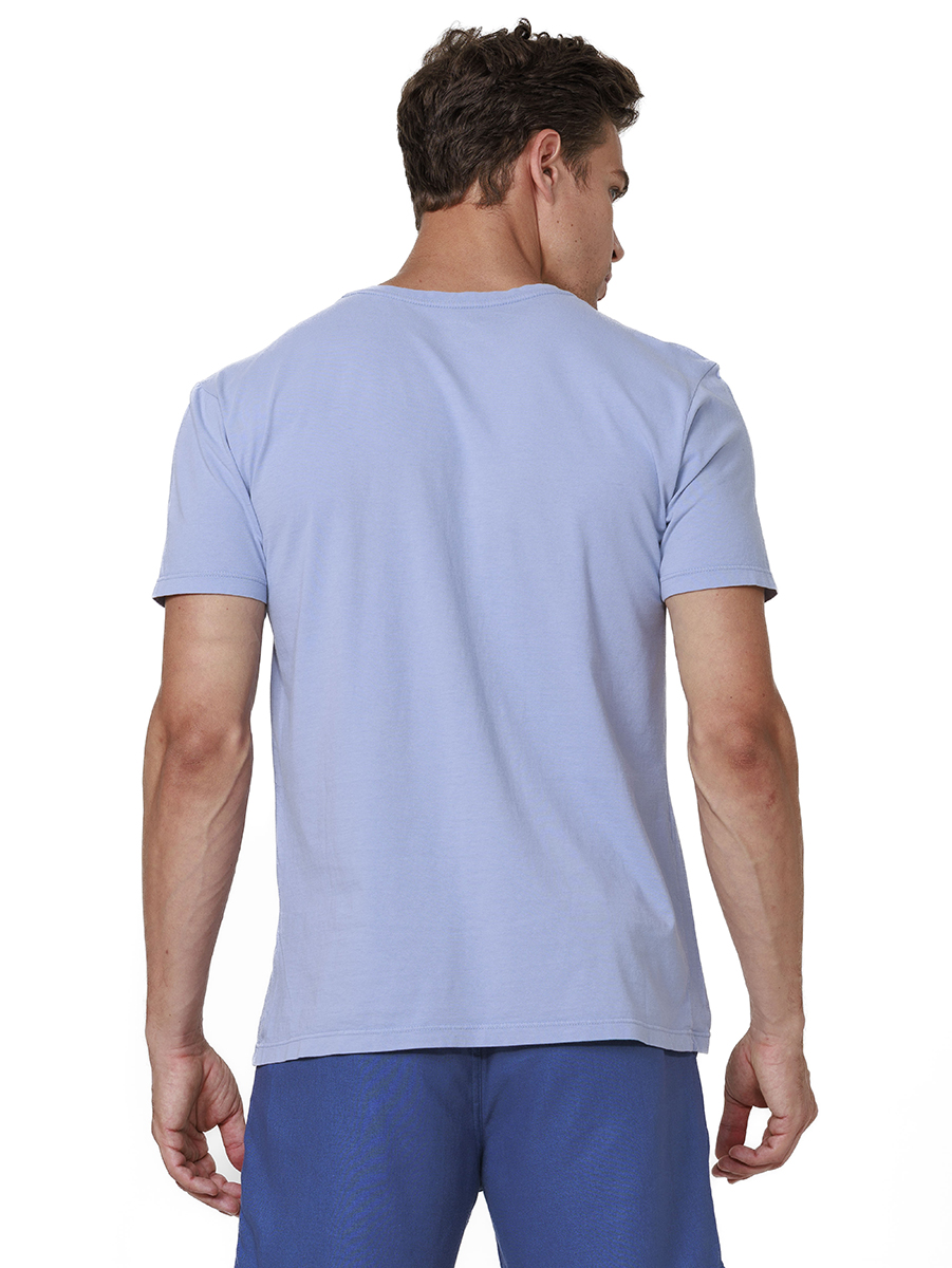 T-shirt confeccionada em algodão leve fio 40.1 penteado, oferecendo toque macio e caimento confortável para uso casual nos finais de semana.
