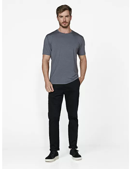 Oferece alta performance com conforto e versatilidade. Sua composição tecnológica, 95% modal 5% elastano, proporciona frescor, flexibilidade e toque suave. Perfeita para o dia a dia, ela garante liberdade de movimento e é resistente a desgaste, mantendo a peça com aspecto impecável por mais tempo. A fibra de modal desempenha um papel essencial no conforto e desempenho da matéria-prima.